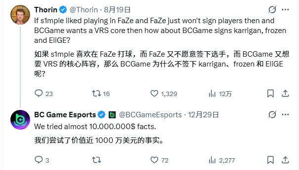 2、1000万美元收购FaZe核心被拒;——BC.Game自己爆料