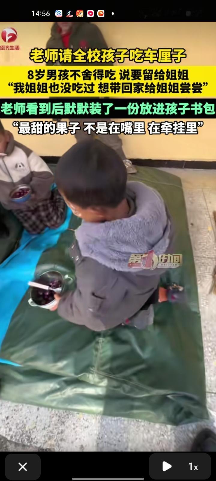 12月26日,南阳市淅川县。老师请全校孩子吃车厘子,有位男孩舍不得吃,说要留给姐