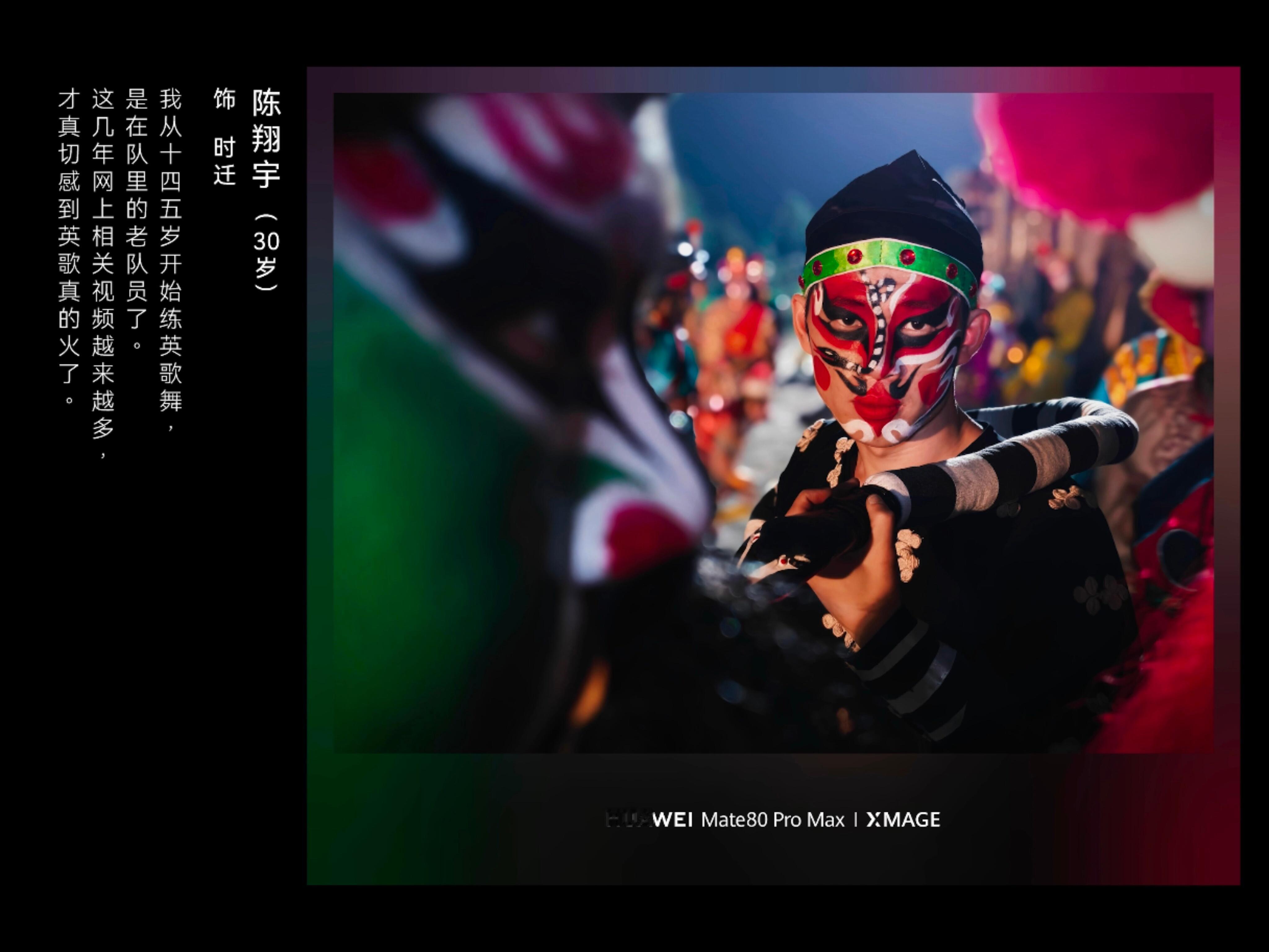 Mate80把非遗英歌拍出新花样 刚看完华为官宣的英歌舞非遗大片,满脑子都是那股势不可挡的生命力,最震撼的是Mate 80系列对“动态美学”的掌控。在英歌舞这种极速腾挪、鼓槌纷飞的高难度场景下,第二代红枫原色影像展现出了教科书级的实力。即便是在户外复杂多变的光影下,武生们色彩斑斓的脸谱、饱和度极高的丝绸戏服,都被100%还原了本真质感,完全没有偏色。更绝的是它的定格能力,每一个空翻、每一次落地激起的尘埃,都被清晰捕捉,毫无拖影。华为Mate 80系列用顶尖科技,赋予了非遗文化全新的视觉张力。这一波文化底蕴与影像实力的硬核碰撞,必须给满分!