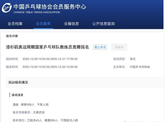 国乒洛奥教练竞聘43选28,竞聘工作将通过公开报名、资格审核、竞聘陈述和答辩、评审委员会无记名投票以及最终结果公示等环节,产生总教练1人、副总教练1人、国家队男女队主教练各1人、国家青年队男女队主教练各1人、国家队教练员12人、国家青年队教练员10人。