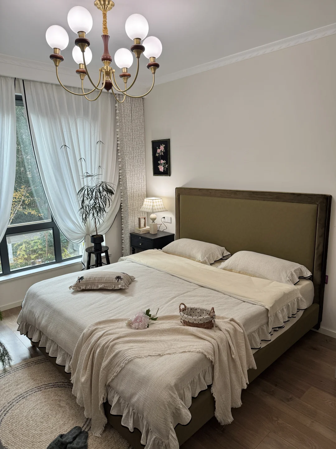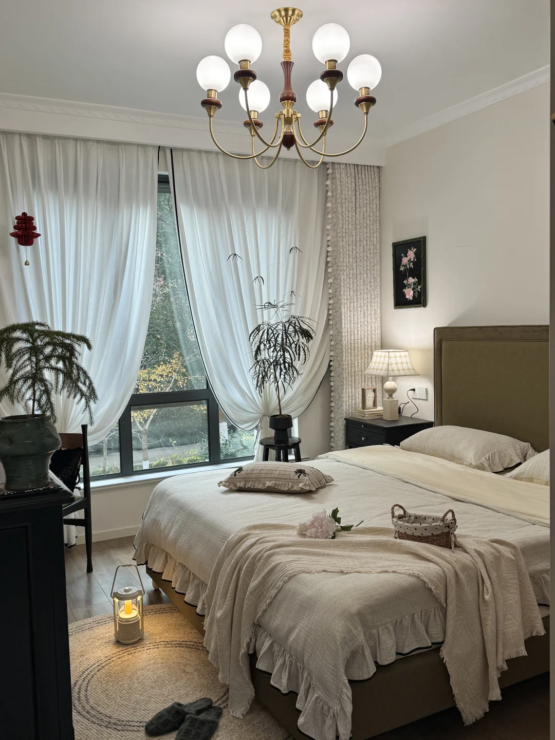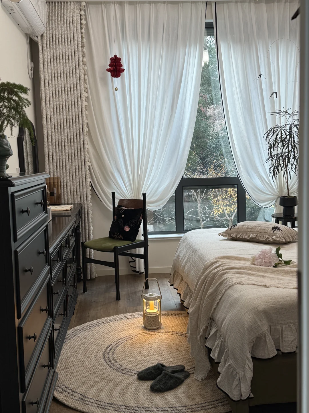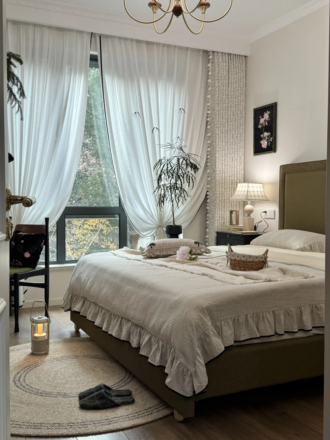 窗帘扎出完美的弧度,铺上一块原毯~