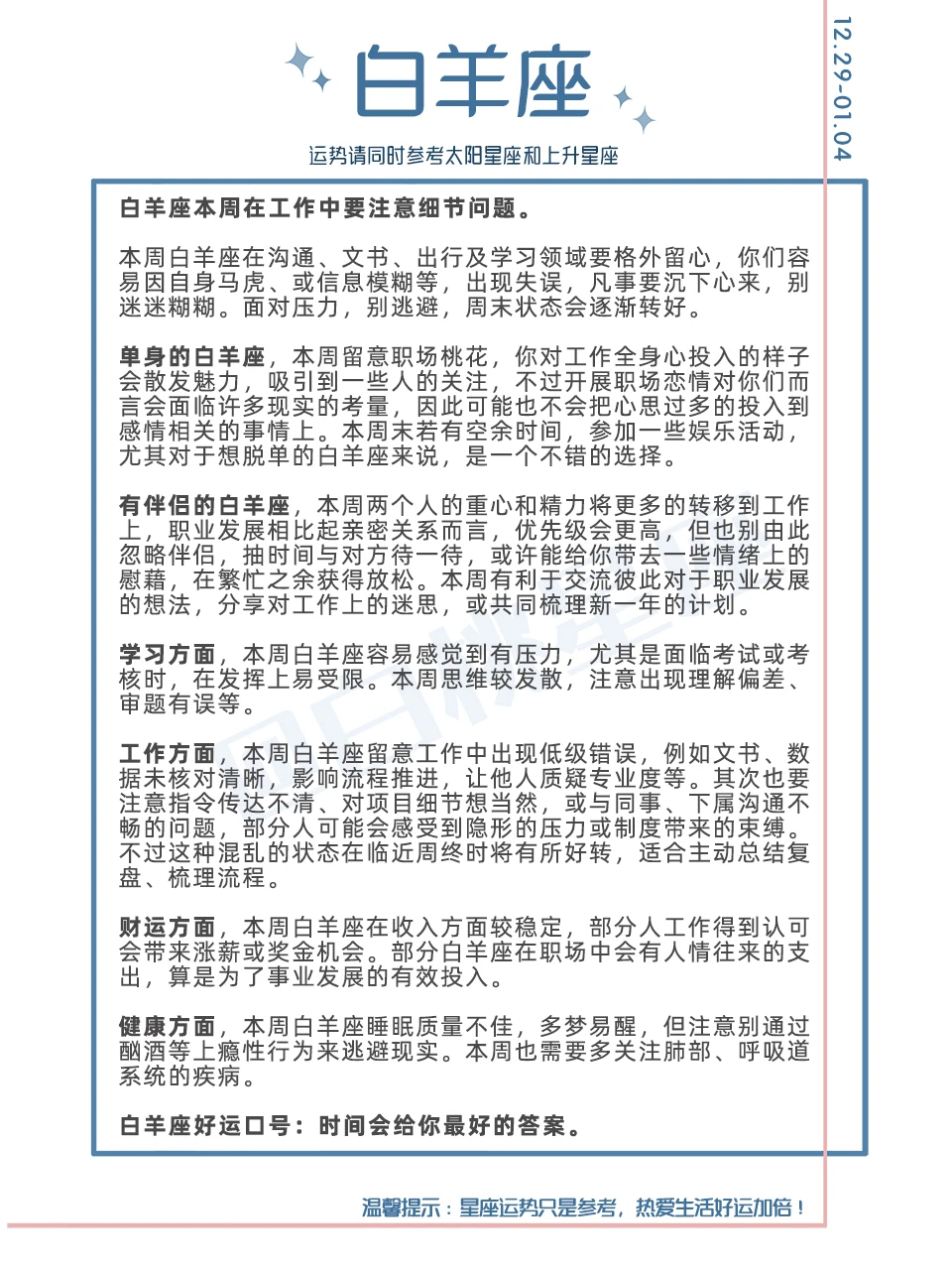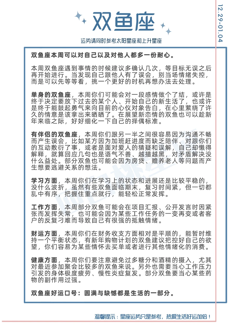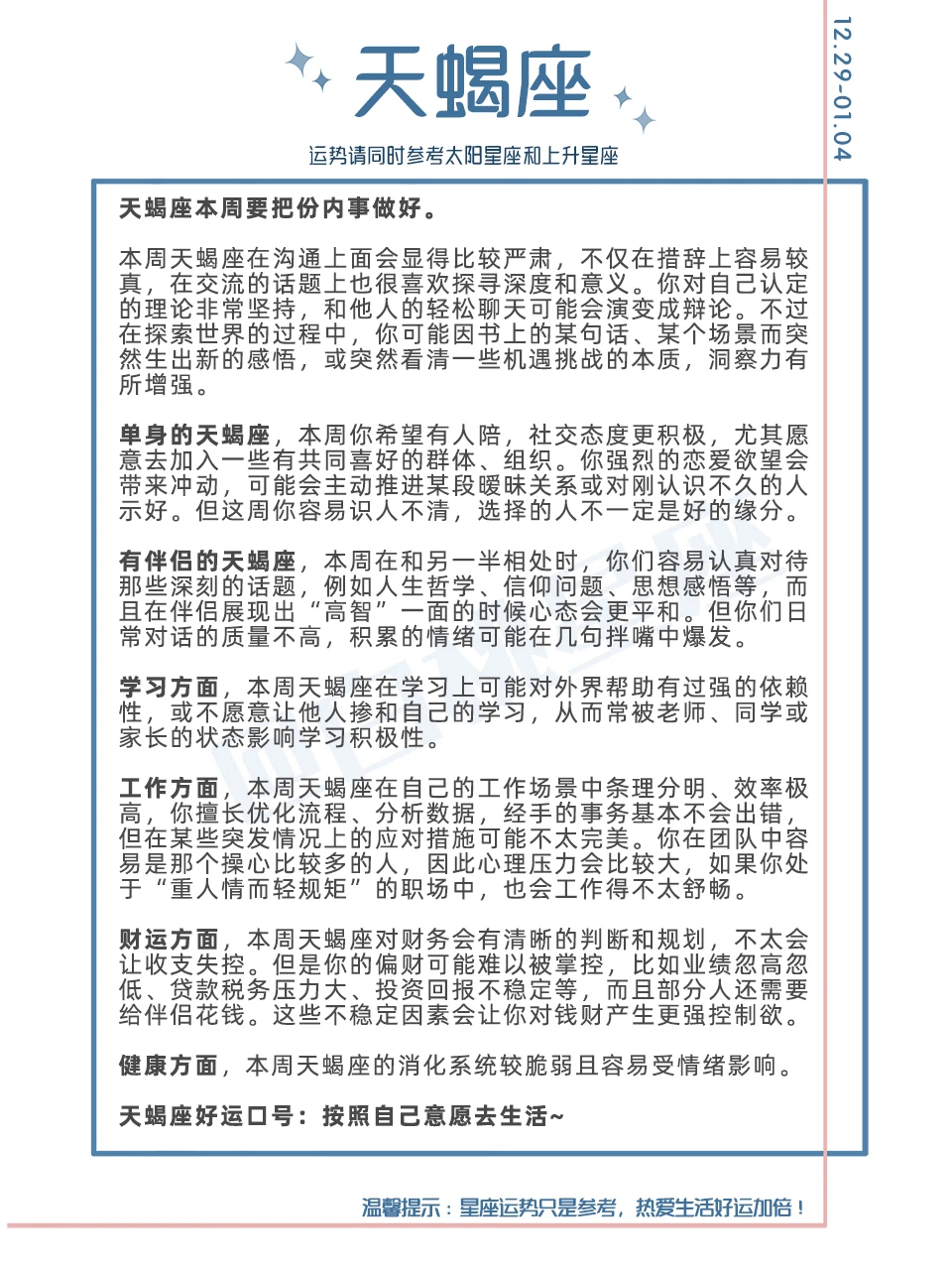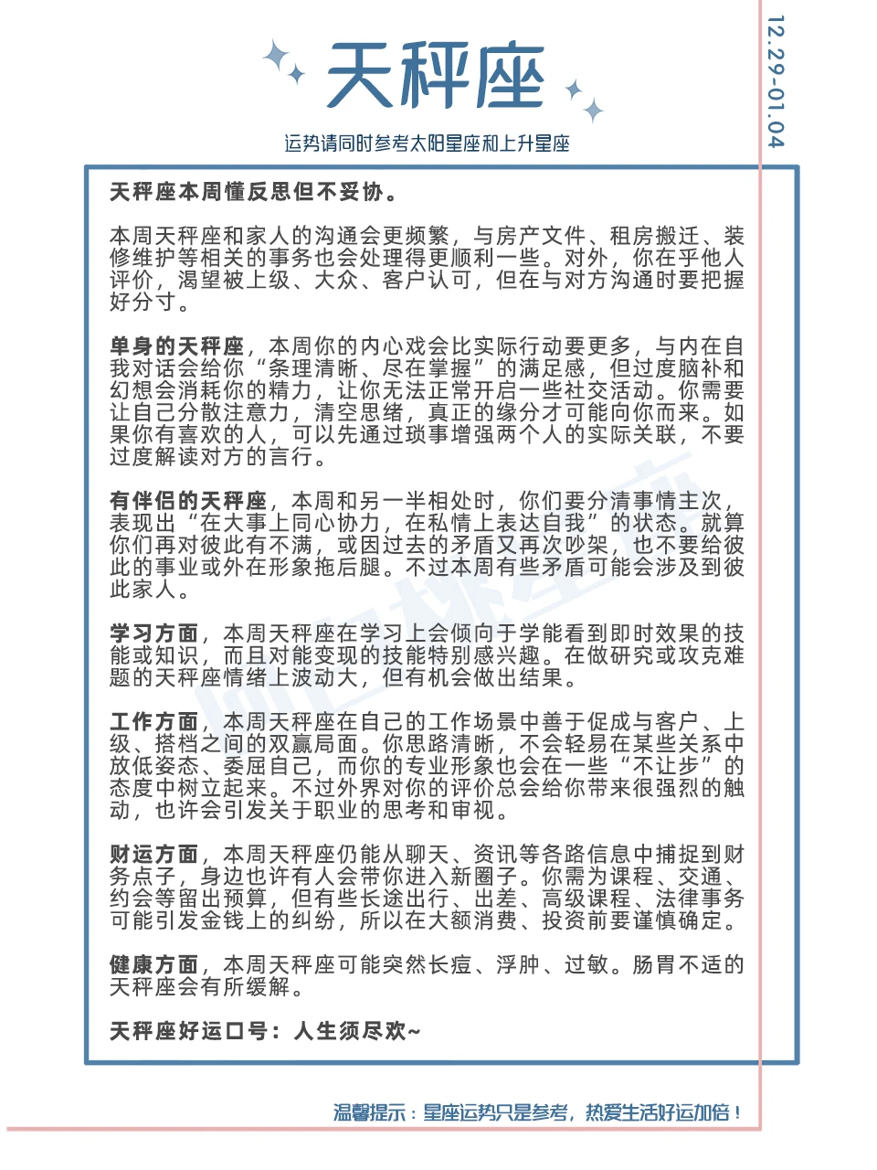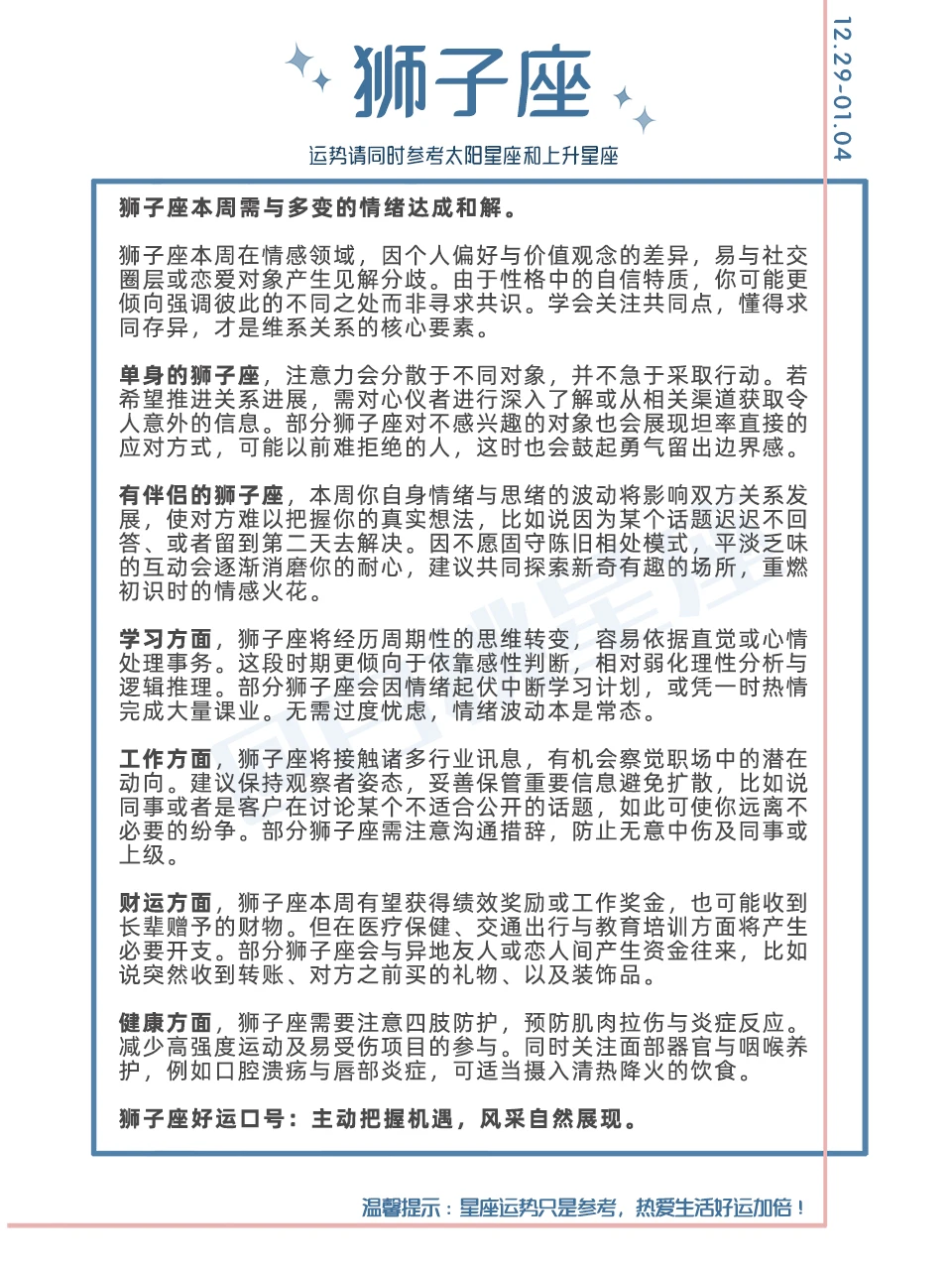 温馨提示:星座运势只是参考,热爱生活好运加倍!