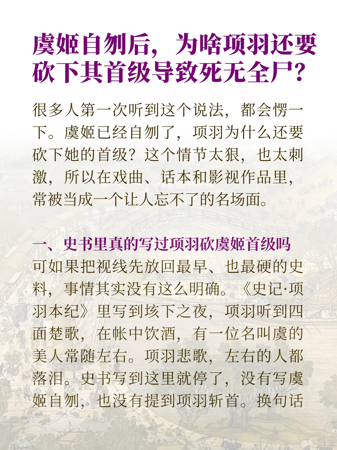 很多人记住的都是霸王别姬的深情,却很少有人追问一个更刺眼的问题:虞姬自刎之后,那一刀到底有没有落下?史书没有写清楚,但后世偏偏一遍遍把它补上。 也许真正值得看的,不是项羽做了什么,而是我们为什么愿意相信那样的结局。