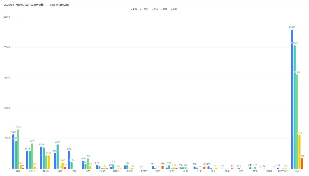 欧洲20国11月中国汽车品牌销量详情!欧洲20国11月中国汽车品牌销量出炉,比亚迪紧追名爵,奇瑞第三,零跑第四,小鹏第五!中国品牌表现优异,还需再接再厉!比亚迪 名爵 奇瑞 小鹏汽车
