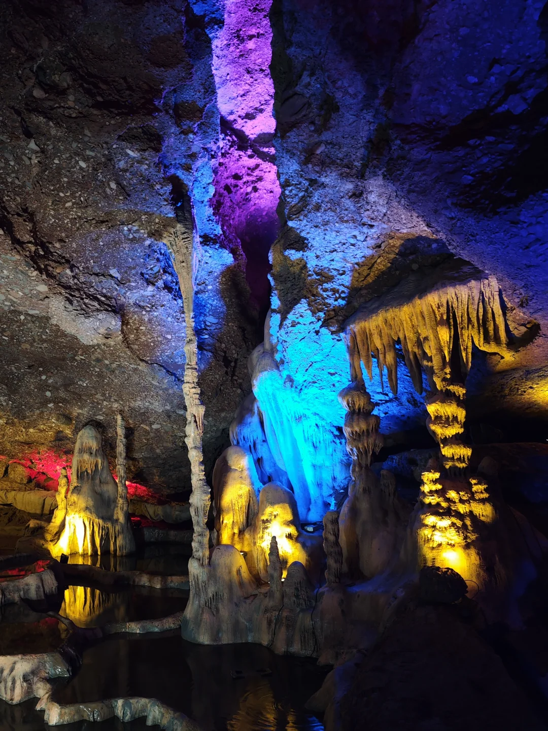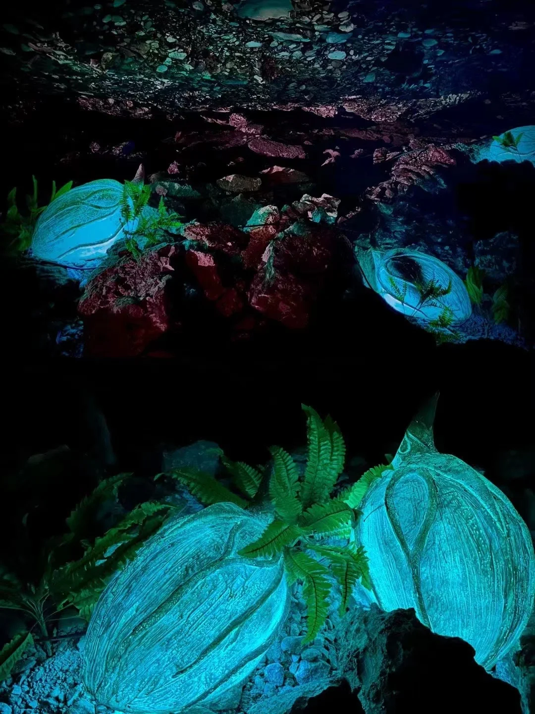 • 玉珠流光:蓝色灯光打在钙化池上,像走进海底龙宫,治愈又出片