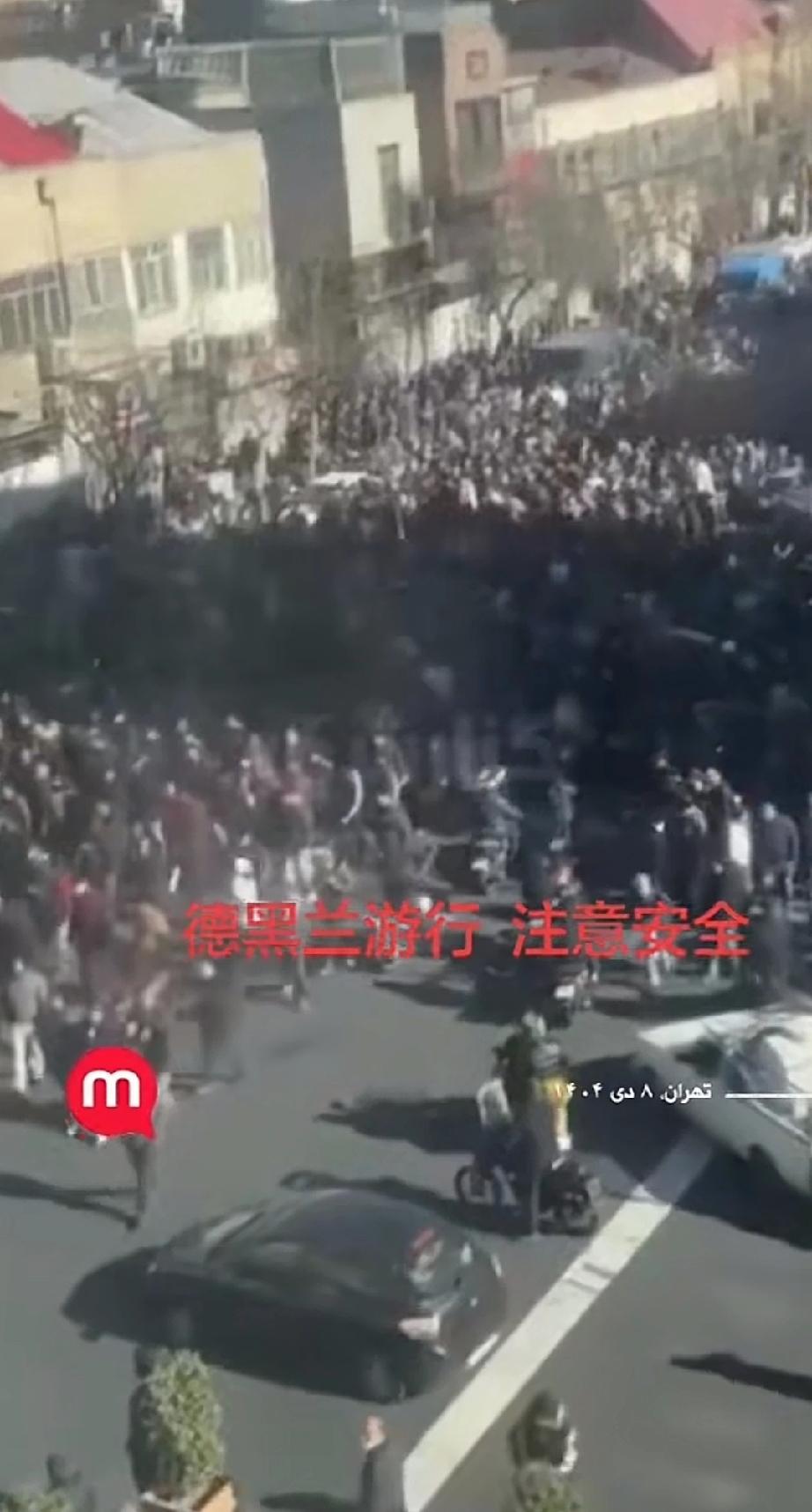 伊朗德黑兰爆发大规模游行示威。114万伊朗币只兑换一美元,物价暴涨。