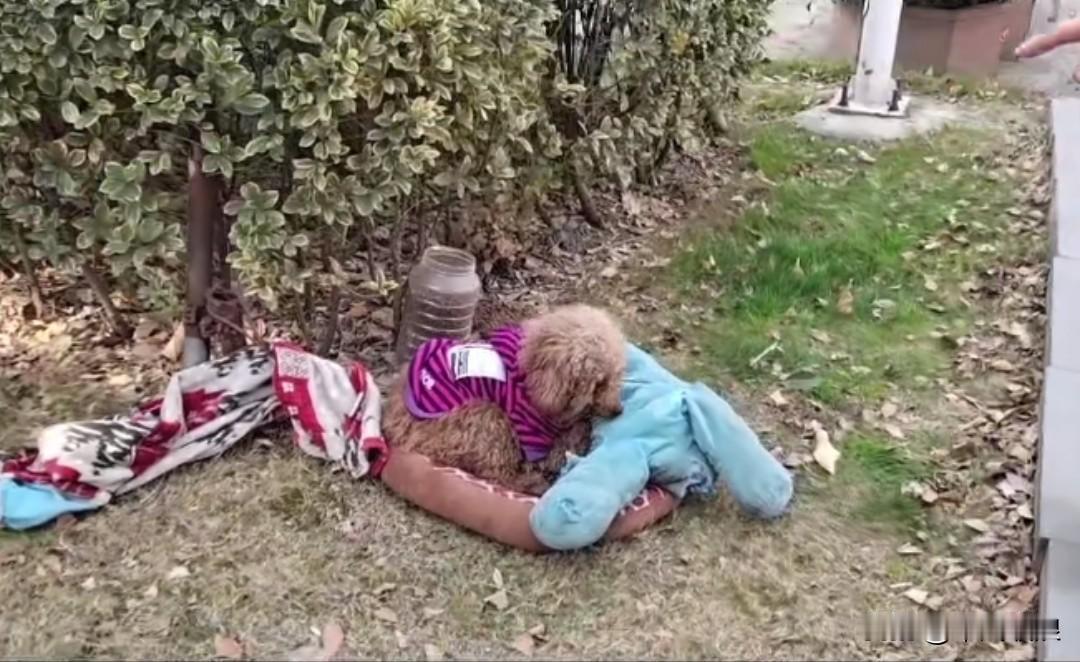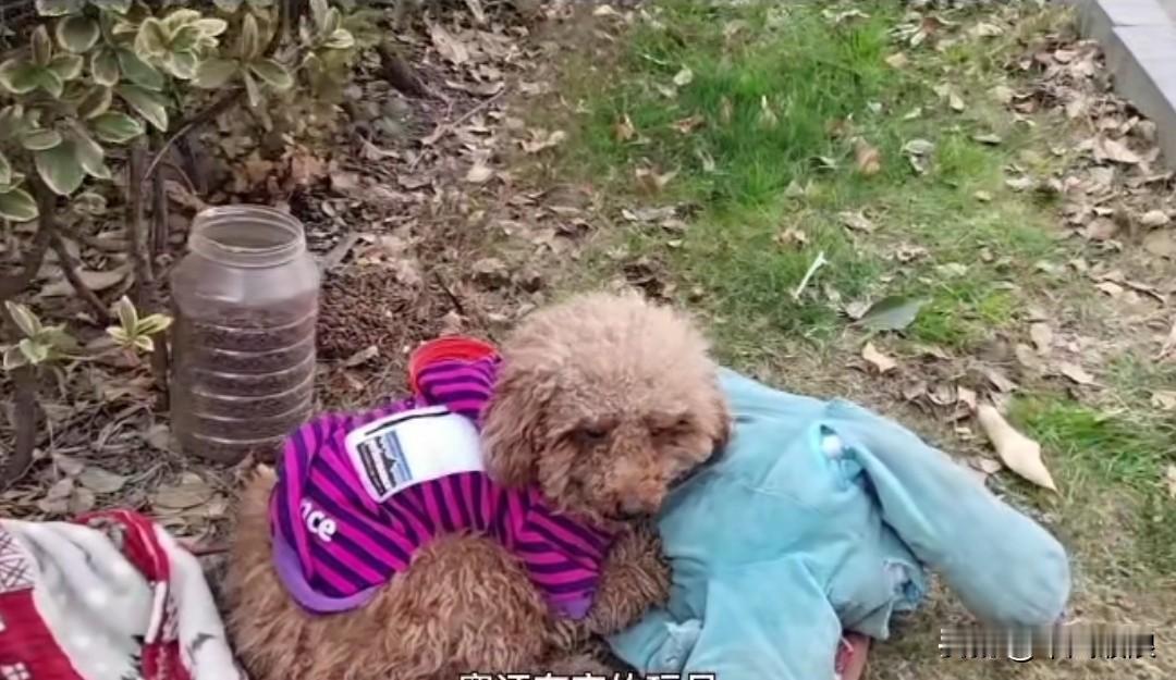 不负责任的主人将小泰迪遗弃在路边,小狗紧紧护着主人给它的玩具,谁都不让碰,它坚信