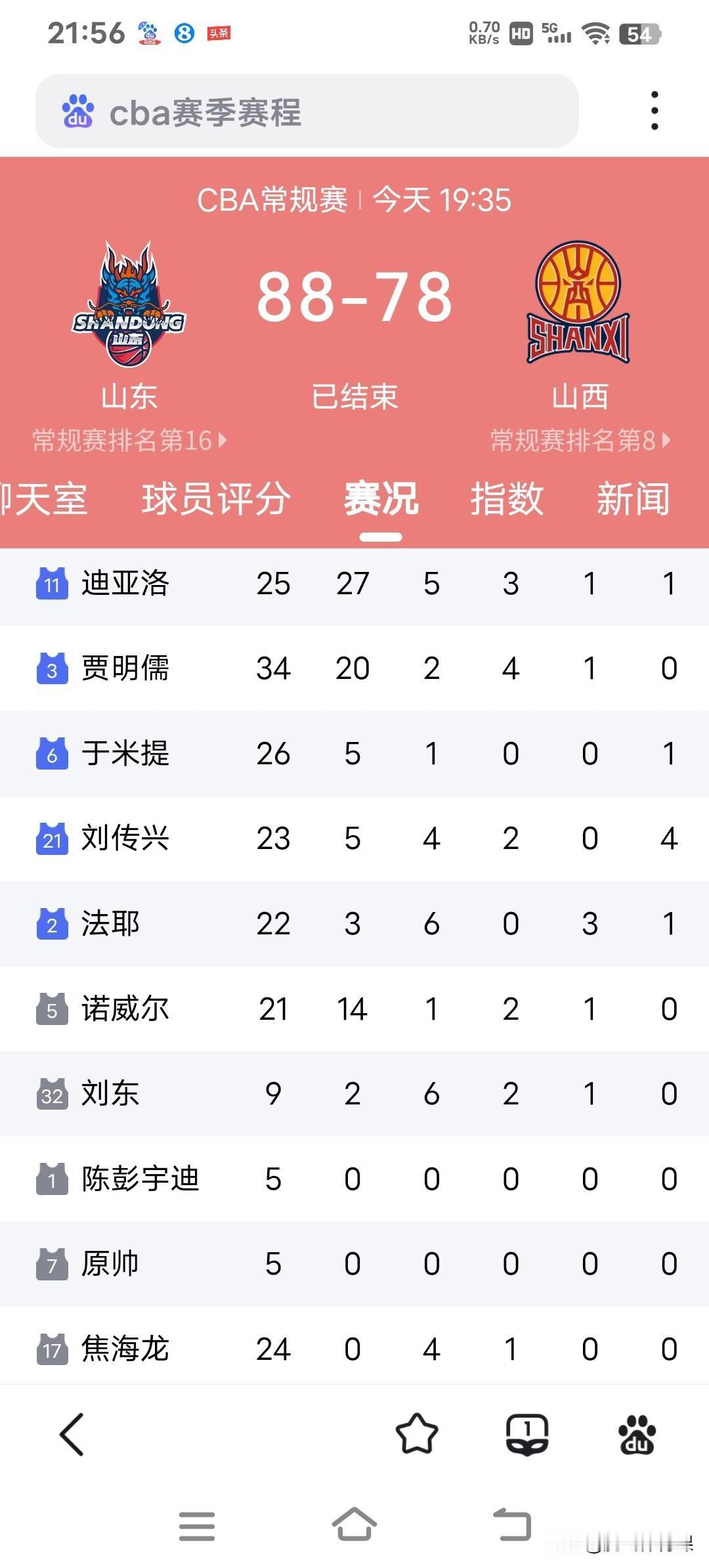 迪亚洛空砍27分,焦海龙0分,山西客场78:88不敌山东遭三连败。 CBA常规