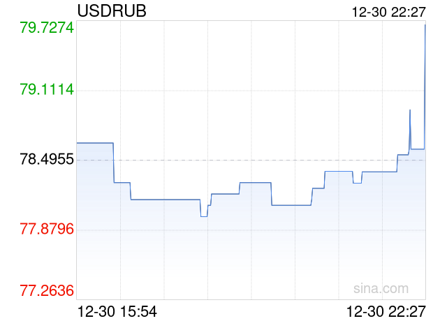 新浪外汇消息2025年12月30日,截至22时27分,外汇市场上美元兑俄罗斯卢布汇率突破1美元兑换79.6955俄罗斯卢布。涨幅为1.5288%