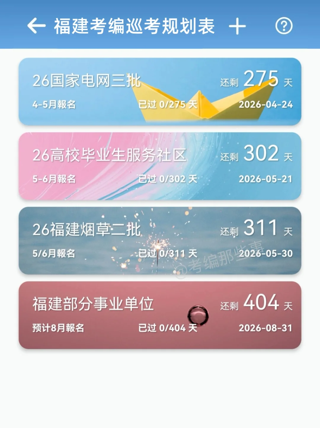 🌳 福建部分事业单位(下半年):2026年8月30日左右;考综基/行测+申论