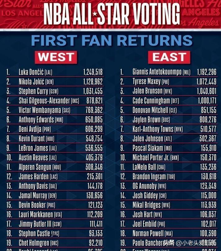 东契奇票王!西部全明星首发太恐怖:4国际球星+库里,这阵容怎么防?💥 🔥2026NBA全明星首轮投票结果炸场!东契奇以1249518票稳坐全联盟票王,而西部潜在首发阵容更让球迷直呼“无解”——东契奇(斯洛文尼亚)、约基奇(塞尔维亚)、SGA(加拿大)、文班亚马(法国)四位国际球星,搭配传奇射手库里,这套组合攻防拉满还毫无短板! 东契奇本赛季32+8+9的准三双数据,是妥妥的“进攻发动机”,后撤步三分+持球串联能盘活全队;约基奇29.6+12.8+11.1的全能三双,堪称“历史最会传球中锋”,低位得分+高位策应样样顶尖;SGA32.2分+接近“180俱乐部”的效率,突破杀伤无解;文班亚马26+12.9+3.6帽,2米24身高覆盖全场攻防;再加上库里28.8分+39.9%三分的“空间杀手”,每个人都是位置顶配。 更震撼的是国际球员统治力——四位国际球星霸榜西部前五,直接把詹姆斯挤到西部第9,新老交替信号超明显。这套阵容进攻端能轰穿防线,防守端有文班亚马护筐,传切、三分、空接全能打。要是真同队,对手该怎么防?评论区聊聊你的破局招!