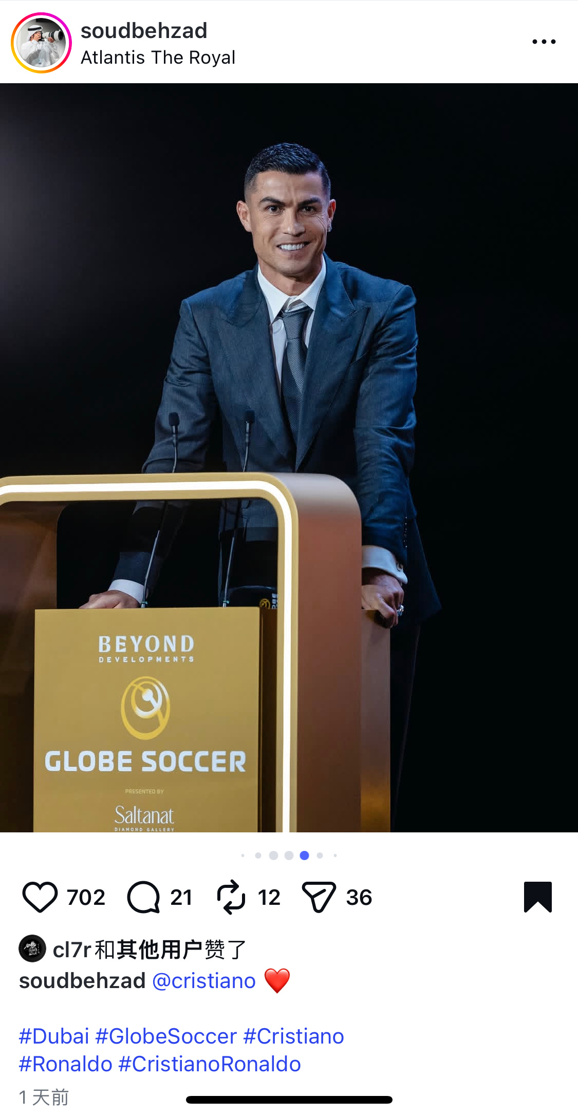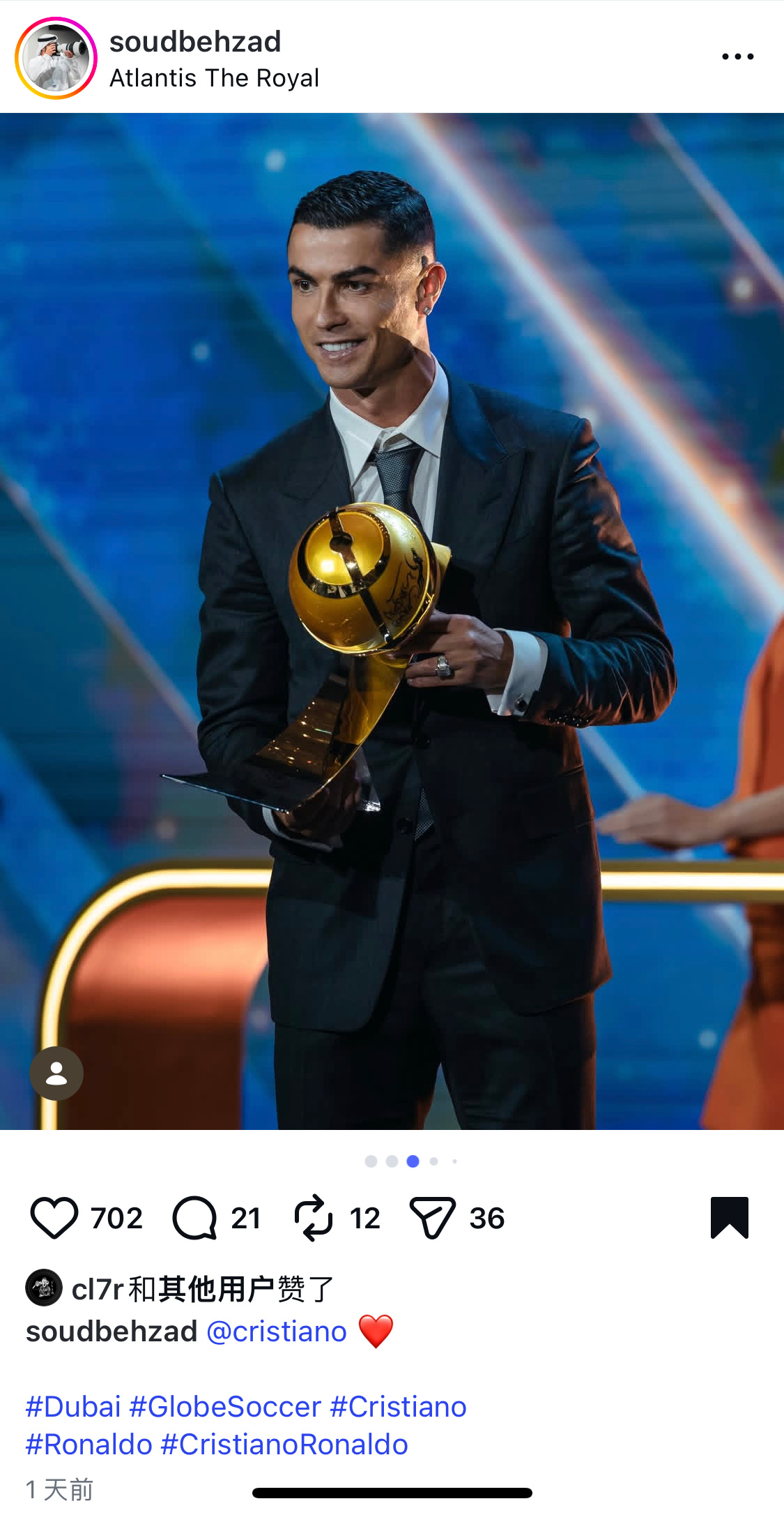 摄影原图直出 🐐C罗当选环足奖年度最佳中东球员