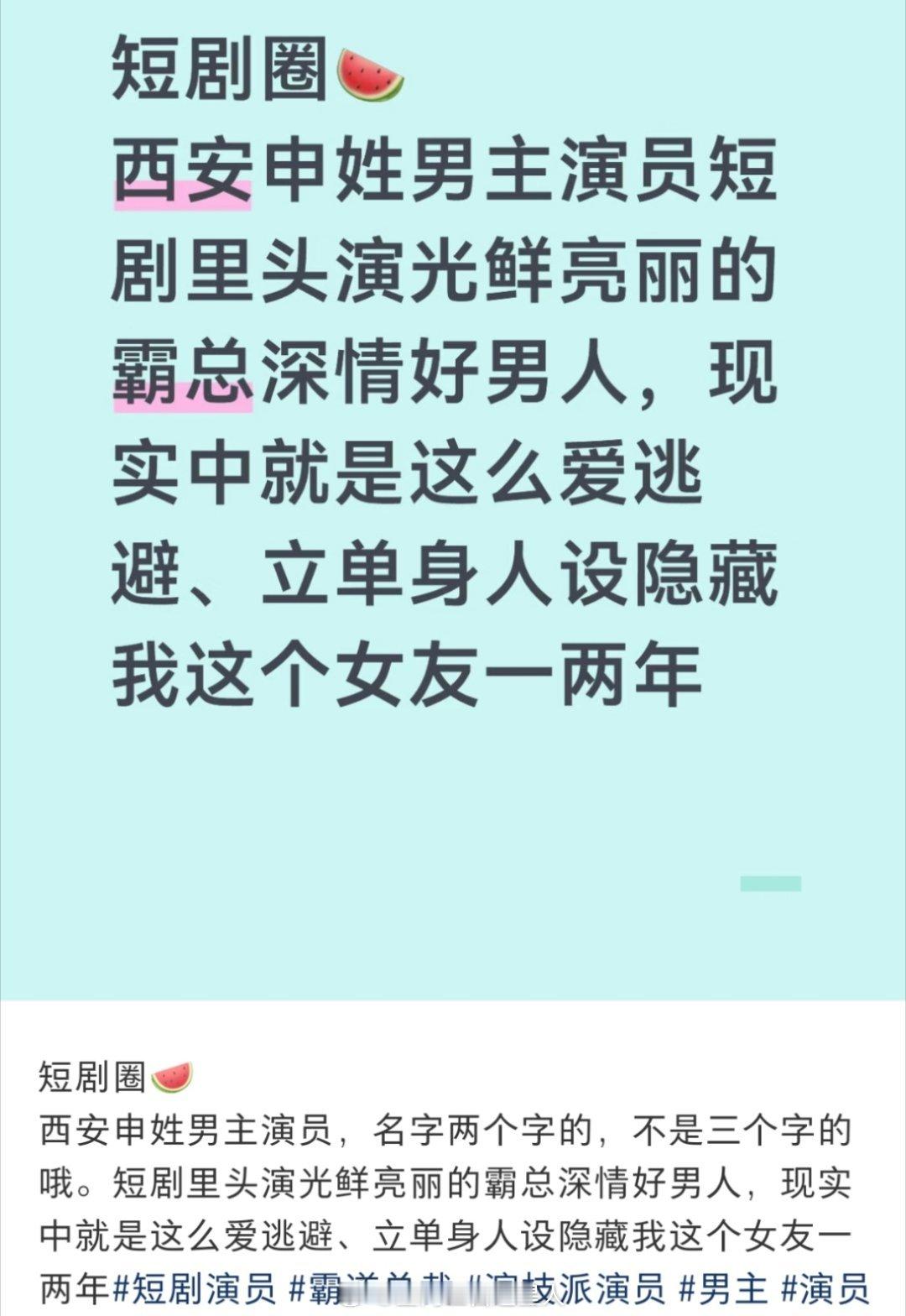 短剧男演员申剑疑似有女友还在立单身人设,我蛮好奇的短剧演员也有不能谈恋爱的条款吗?