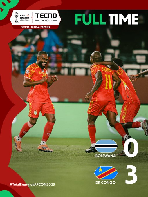 最终民主刚果3-0博茨瓦纳,以小组第二的成绩晋级淘汰赛。