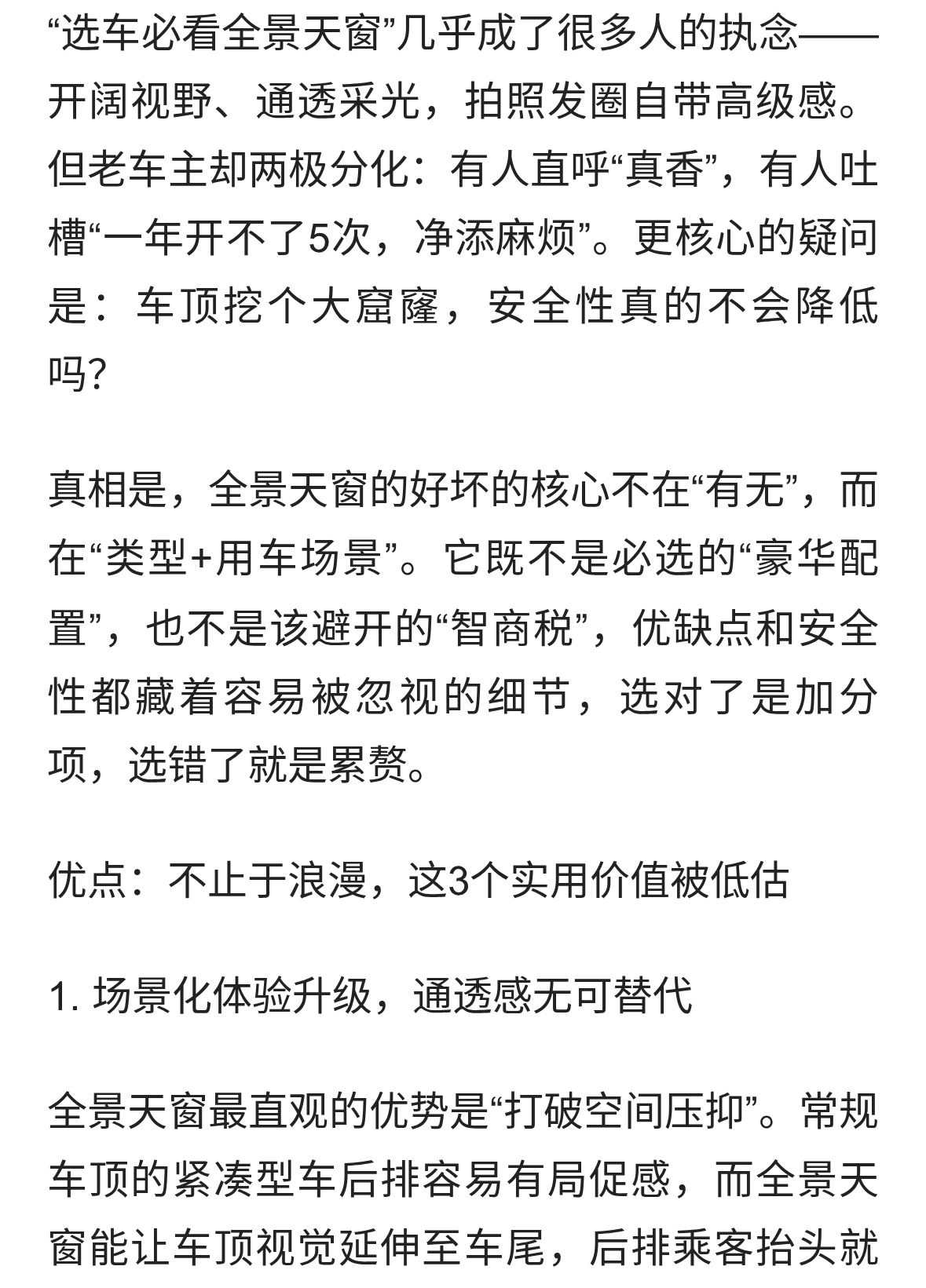 全景天窗是“浪漫加分项”还是“隐形累赘”?安全性真相