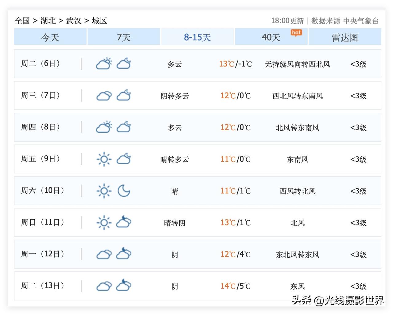 武汉冬天,最冷的时刻,即将到来!12月31日,武汉下雨,降雨降温……1月1日,武汉断崖式大降温,最低气温跌破0度……跌至-1度,零下1度……1月2日和3日,武汉最低气温跌至-3度,零下3度……腊梅花要开心盛开啦! 再然后……1月1日到13日,最冷就是1月1日到5日,元旦节,可能是1月中上旬武汉最冷的几天…… 好在,距离2月1日也就一个月了……这个时候,下本钱买羽绒服,好像没有必要了吧?!