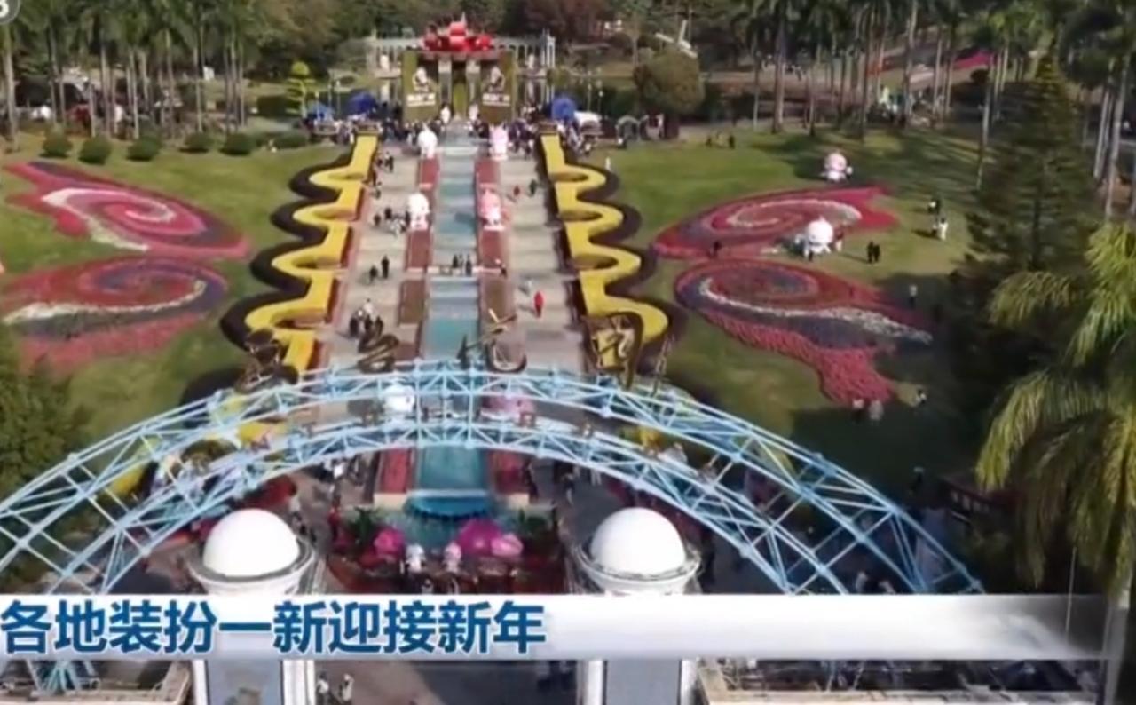 元旦将至,城市被迎新的氛围与盎然生机包裹。公园内的景观大道被红黄相间的花艺造型装