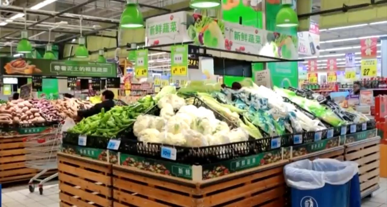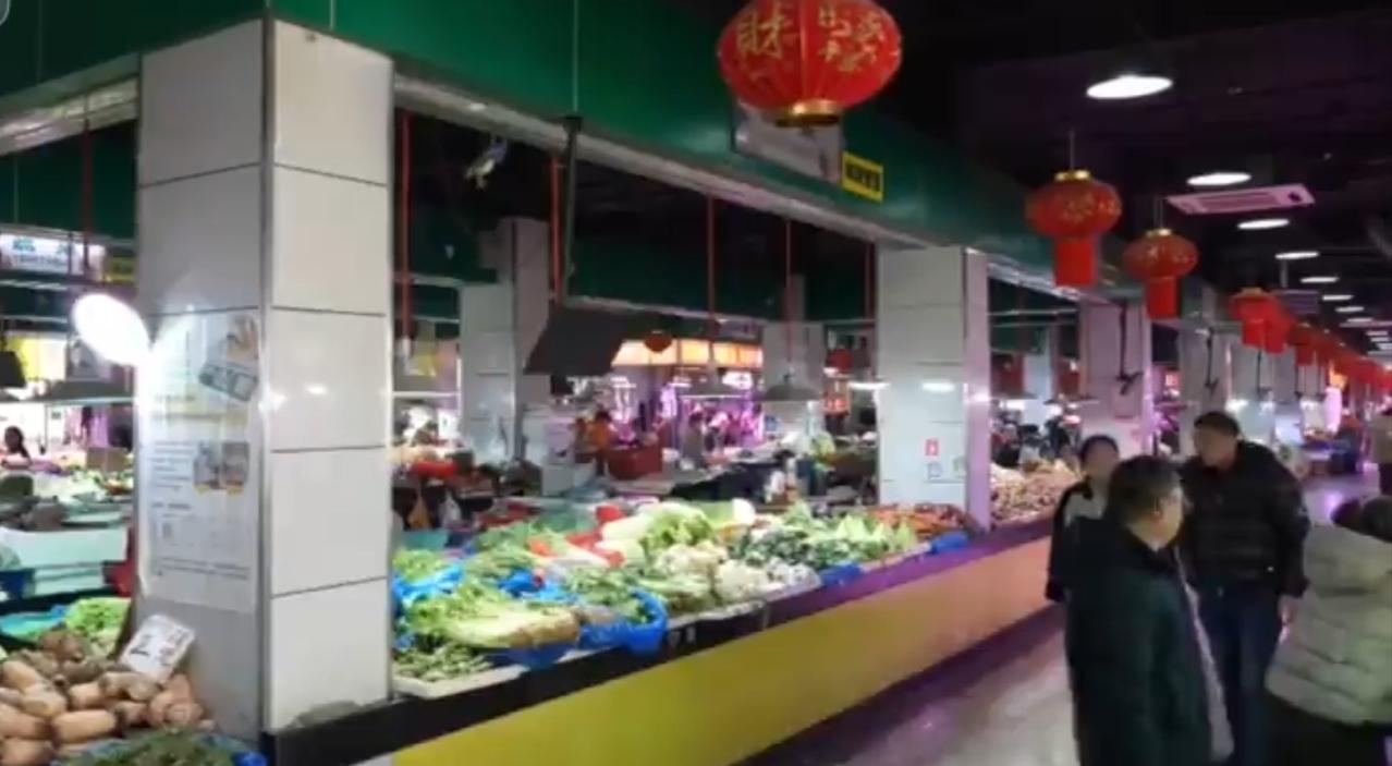 满载新鲜蔬菜的红色货车正在装卸,一颗颗蔬菜从田间地头被送上运输线,开启了从产地到市场的旅程。超市里,各类蔬菜整齐码放、琳琅满目,生鲜区的货架被填得满满当当;农贸市场内红灯笼高挂,摊位上的蔬菜色彩鲜亮,顾客穿梭其间挑选,田间的丰收最终化作了百姓餐桌旁的烟火气,保障着日常的食材供应。