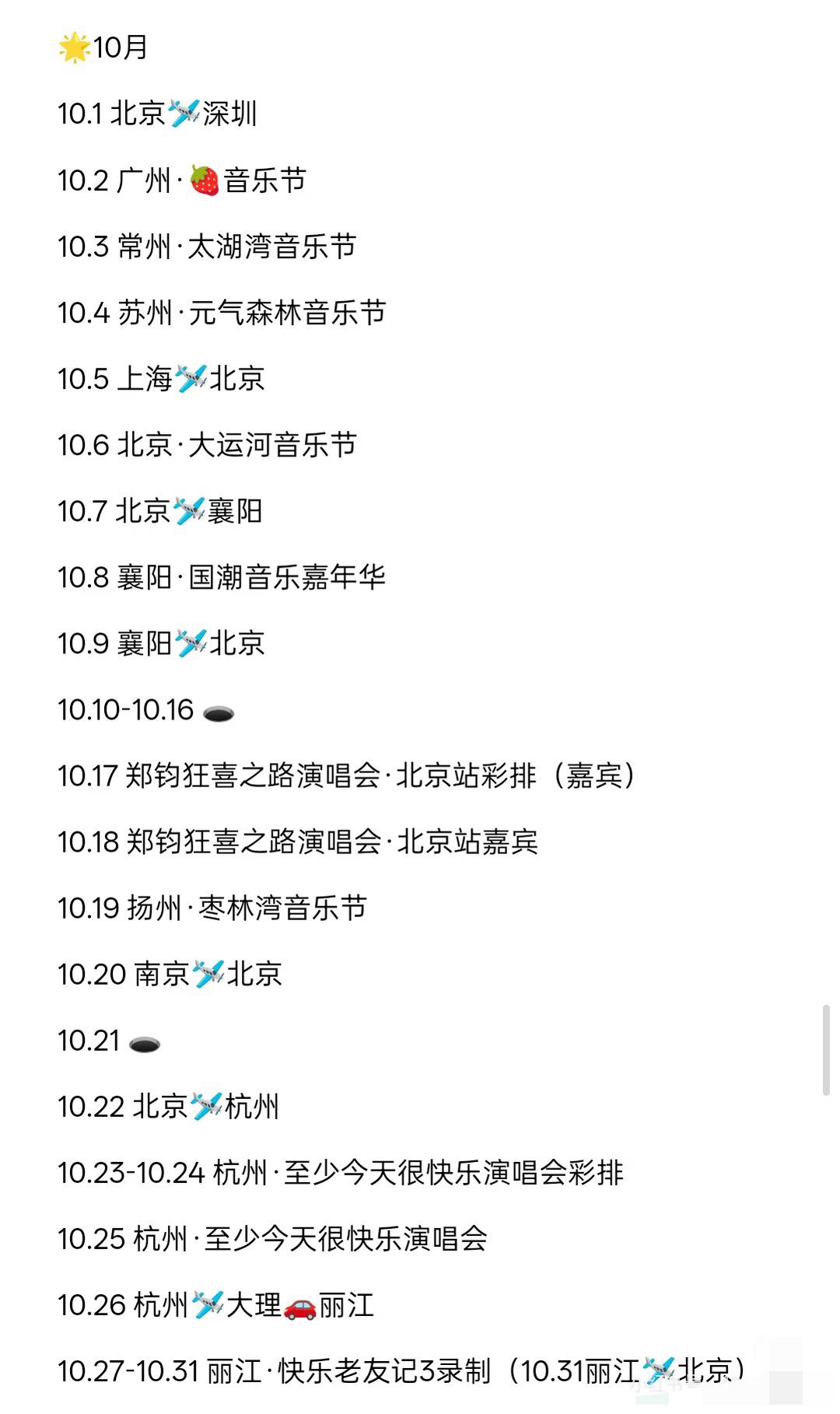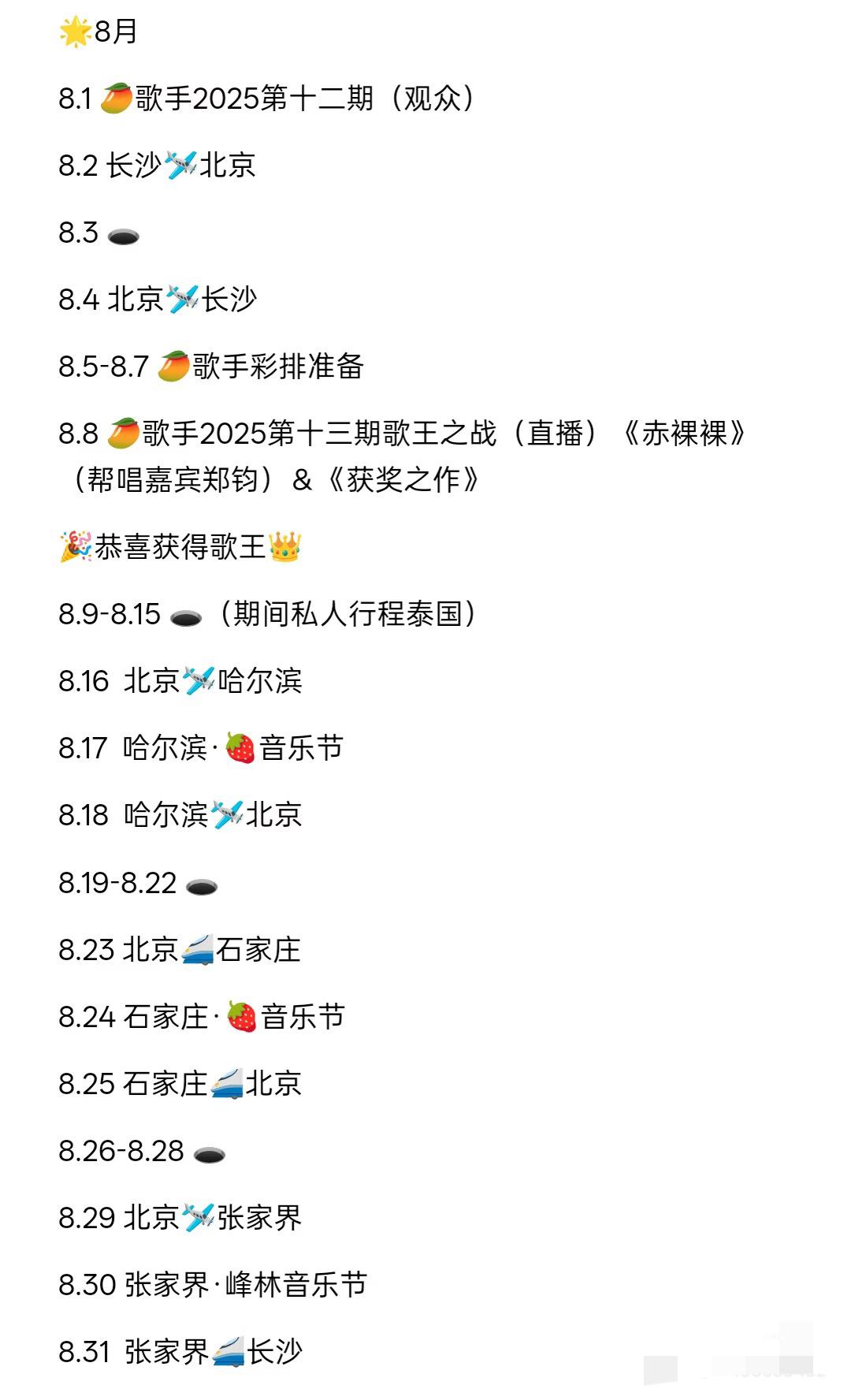歌王每天在做什么?陈楚生2025年行程全记录。 14场《荒芜之境》+1场《至少今天很快乐》演唱会。 5-8月长达4个月13期“歌手”舞台准备、演练、彩排及演出,更要面临所有的质疑和“攻击”,最终获得“歌王”。 录制2个综艺“快发”和“老友记”。 参加包括春晚、中秋、大湾区、电影节、跨年在内的9个晚会录制、彩排或直播。 4个重量级奖项—-参加qq音乐巅峰之夜、中国新歌会、新闻周刊影响力获得年度巅峰影响力歌手、腾讯音乐榜年度音乐人和年度OST演绎以及年度影响力歌手。 另外还有九个地方的9个音乐节。 密密麻麻地行程里还发布了《荒岛》、《远行的人》、《被大雨冲刷的城市》、《庙堂之外》、《获奖之作》、《无题》、《耍赖》、《墙》、《让风保佑我们的永恒》9首新歌! 星光不负赶路人,他值得这所有的荣誉!