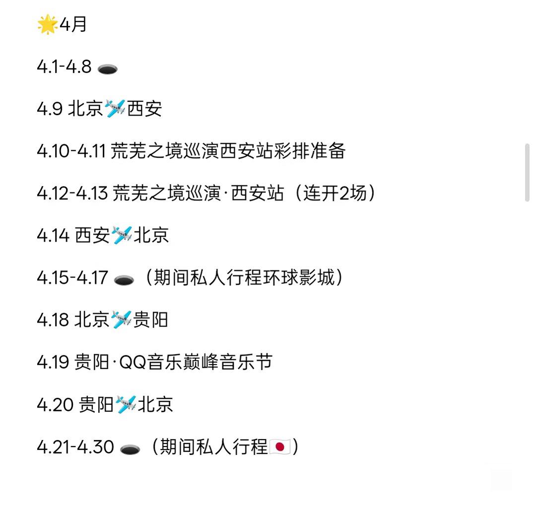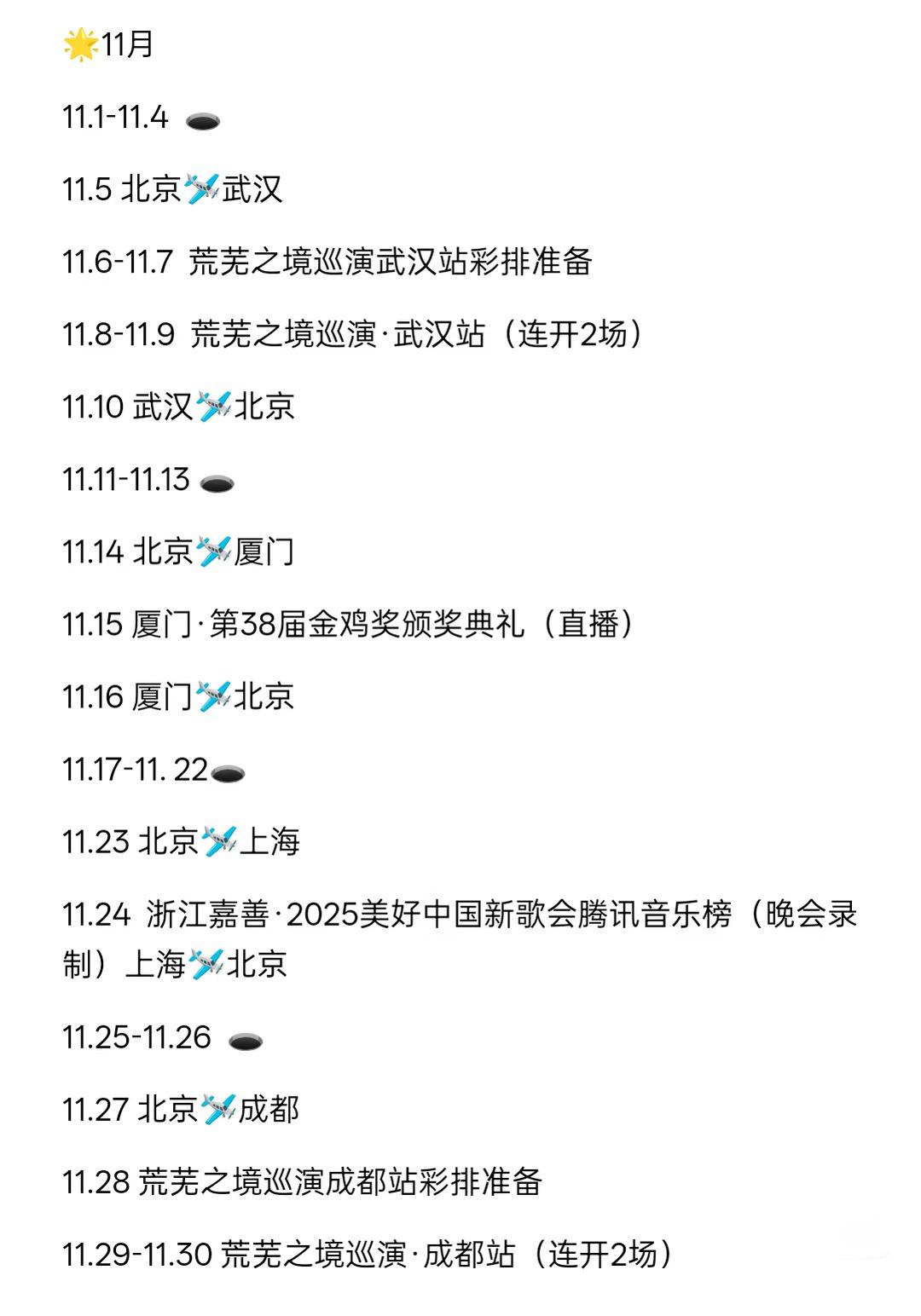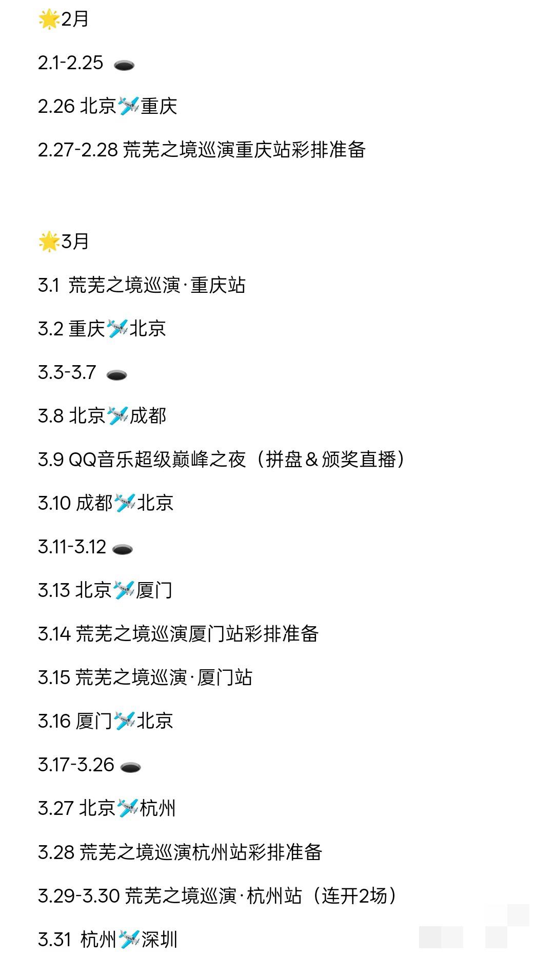 歌王每天在做什么?陈楚生2025年行程全记录。 14场《荒芜之境》+1场《至少今
