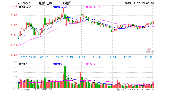 12月30日,集成电路ETF(159546)涨1.80%,成交额2179.46万元。当日份额减少200.00万份,最新份额为1.15亿份,近20个交易日份额减少1200.00万份。最新资产净值计算值为2.15亿元。