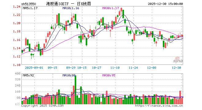 12月30日,港股通50ETF(513550)涨0.17%,成交额9282.26万元。当日份额增加100.00万份,最新份额为23.06亿份,近20个交易日份额减少7400.00万份。最新资产净值计算值为27.03亿元。