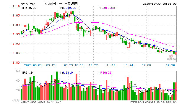 12月30日,港股通互联网ETF(159792)涨0.83%,成交额30.41亿元。当日份额减少3.99亿份,最新份额为932.35亿份,近20个交易日份额增加15.62亿份。最新资产净值计算值为799.21亿元。