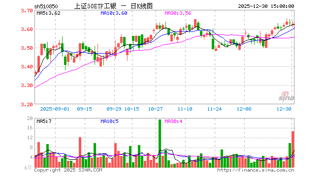 12月30日,上证50ETF工银(510850)跌0.08%,成交额5317.76万元。当日份额增加1020.00万份,最新份额为7669.89万份,近20个交易日份额增加1920.00万份。最新资产净值计算值为2.78亿元。