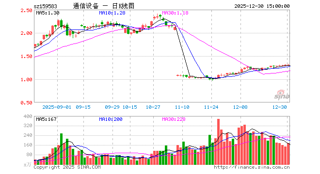 通信设备ETF(159583)业绩比较基准为中证通信设备主题指数收益率,管理人为富国基金管理有限公司,基金经理为苏华清,成立(2024-06-28)以来回报为161.42%,近一个月回报为19.79%。
