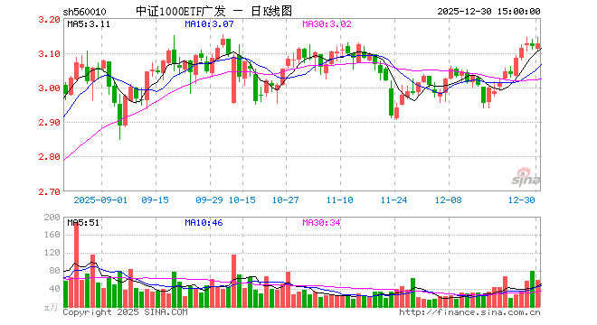 12月30日,中证1000ETF广发(560010)涨0.19%,成交额1.85亿元。当日份额增加1.41亿份,最新份额为114.85亿份,近20个交易日份额增加3.03亿份。最新资产净值计算值为358.80亿元。