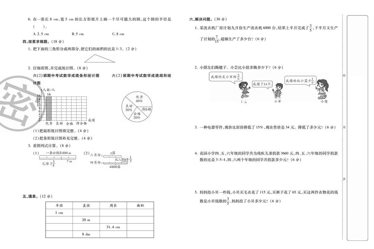 2025秋人教版数学六年级上册期末达标测评卷(二)