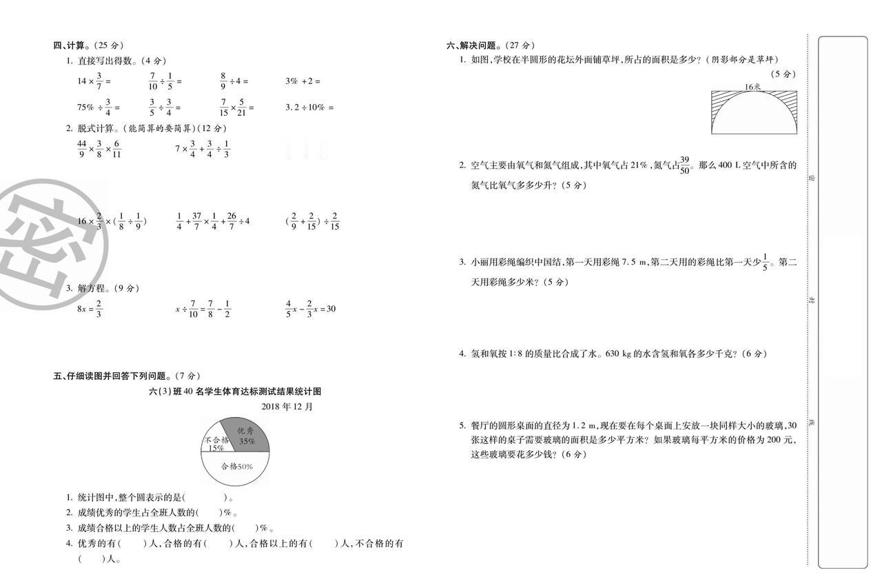 2025秋人教版数学六年级上册期末达标测评卷(一)