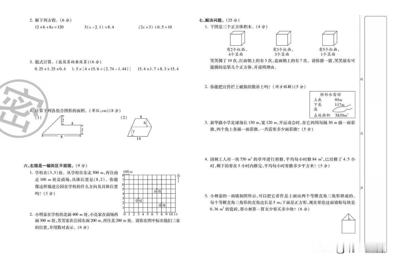 2025秋人教版数学五年级上册期末达标测评卷(一)