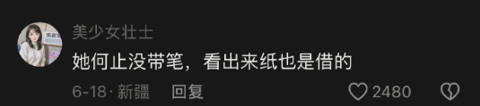 她何止没带笔,看出来纸也是借的