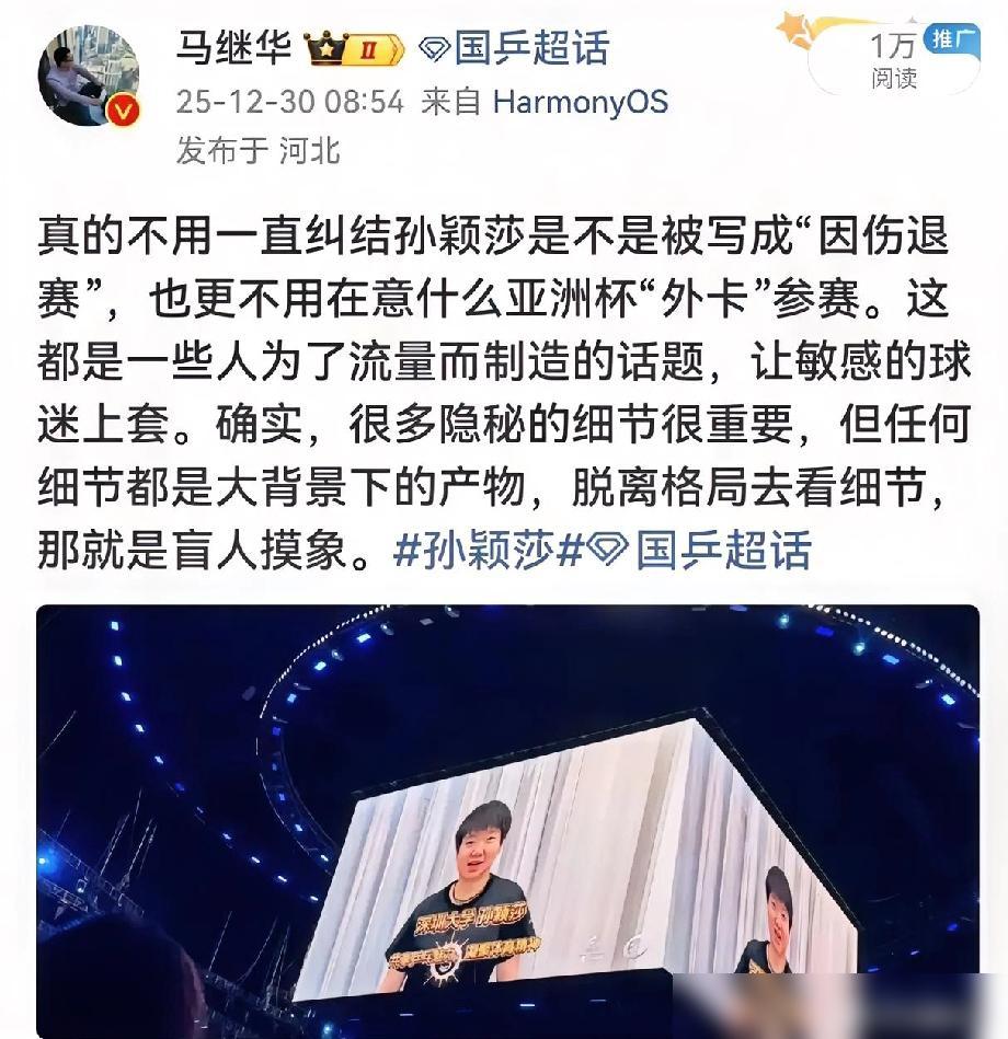 特别喜欢马老师这段话,相信这样的分析能起到,“一语点醒梦中人”的作用。 其实最近关于莎莎退赛的事儿讨论挺多的,我倒觉得不管中间具体的细节是啥,只要她能借这个机会喘口气、把身体养好,这比什么都强。 说句实在话,顶级运动员的职业生涯是个长跑,偶尔的“暂停键”其实是最好的保护。 至于大家争论的,莎莎参加亚洲杯到底是不是靠“外卡”,我感觉真的没必要在这个名头上绕弯子。 归根结底,有资格站在那个赛场上本身就说明了实力,结果在那儿摆着呢,这就够了。 很多时候,我们评价一个运动员,其实也是在投射自己的情绪。 你要是打心底里欣赏她,那她哪怕只是站在那里,在你眼里都是带光的,觉得她做什么都对。 可要是心里带了偏见,那真是她干啥都能被挑出刺来,与其在这些细节里跟人争个高低,不如豁达一点。 只要看到她能健健康康、开开心心地重新回到球场挥拍,对咱们这些真心喜欢她的人来说,就已经是最幸福的事了。