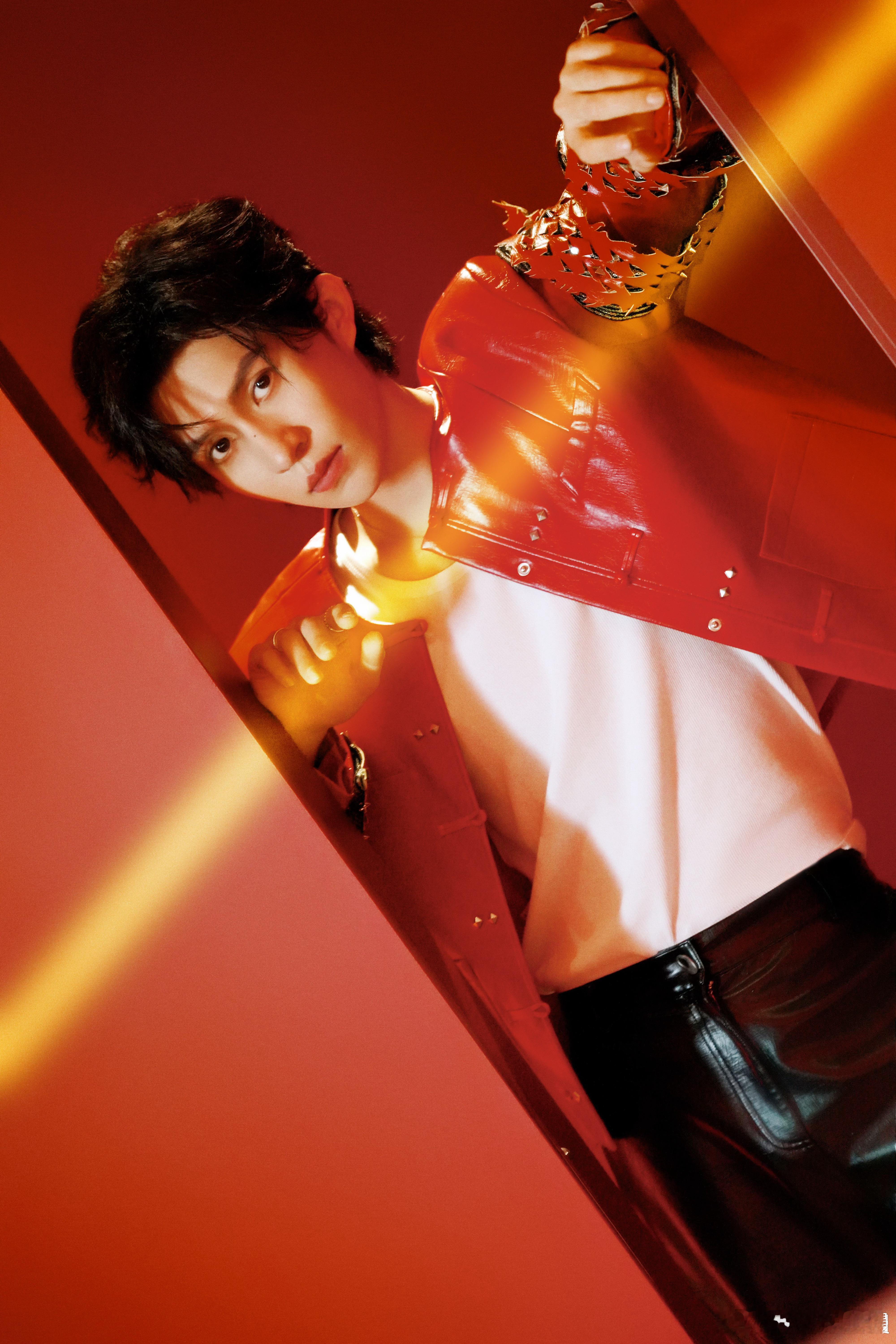 张集骏撞衫丁禹兮张杰红色皮衣简直是帅哥标配!张集骏跨年晚会穿它又酷又亮眼,和丁禹