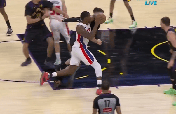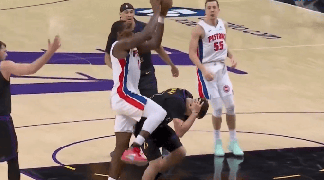 杜伦突破时肘到拉拉维亚面部,裁判回看吹罚杜伦一级恶意