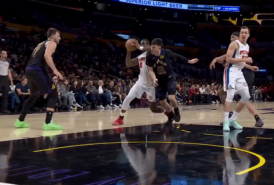 虎扑12月31日讯NBA常规赛,湖人对阵活塞的比赛正在进行中。