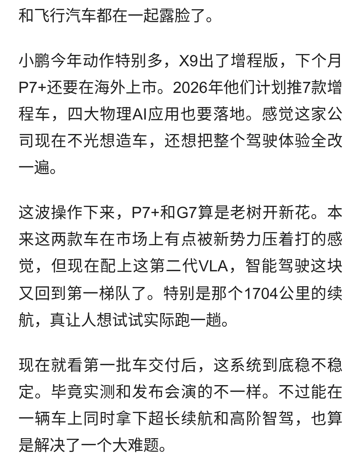 12月31日,小鹏新款P7+和G7要搞大事情了,第二代VLA系统来了