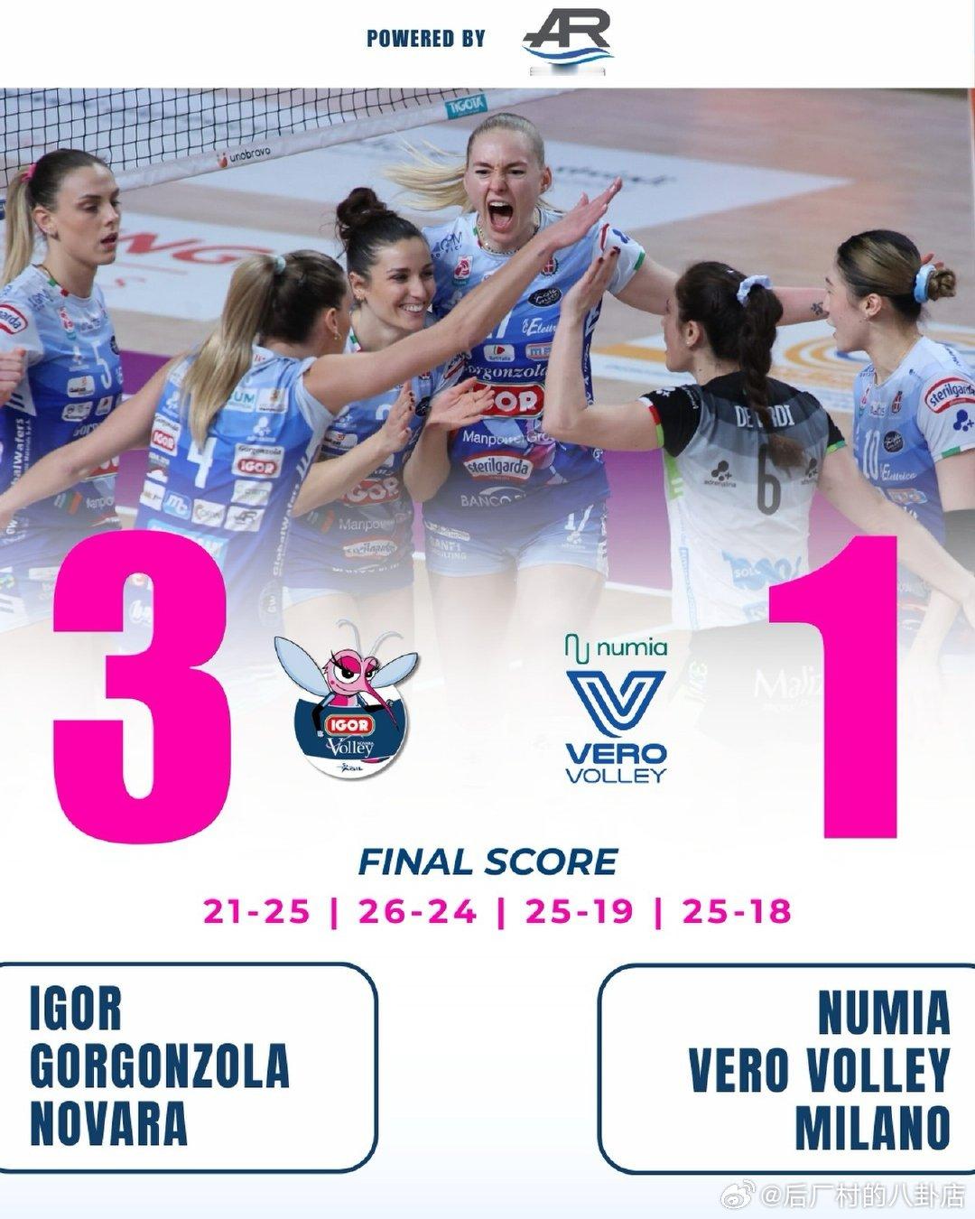 25-26赛季女排意大利杯1/4战罢,最终四强对阵出炉科内利亚诺vs诺瓦拉、斯坎