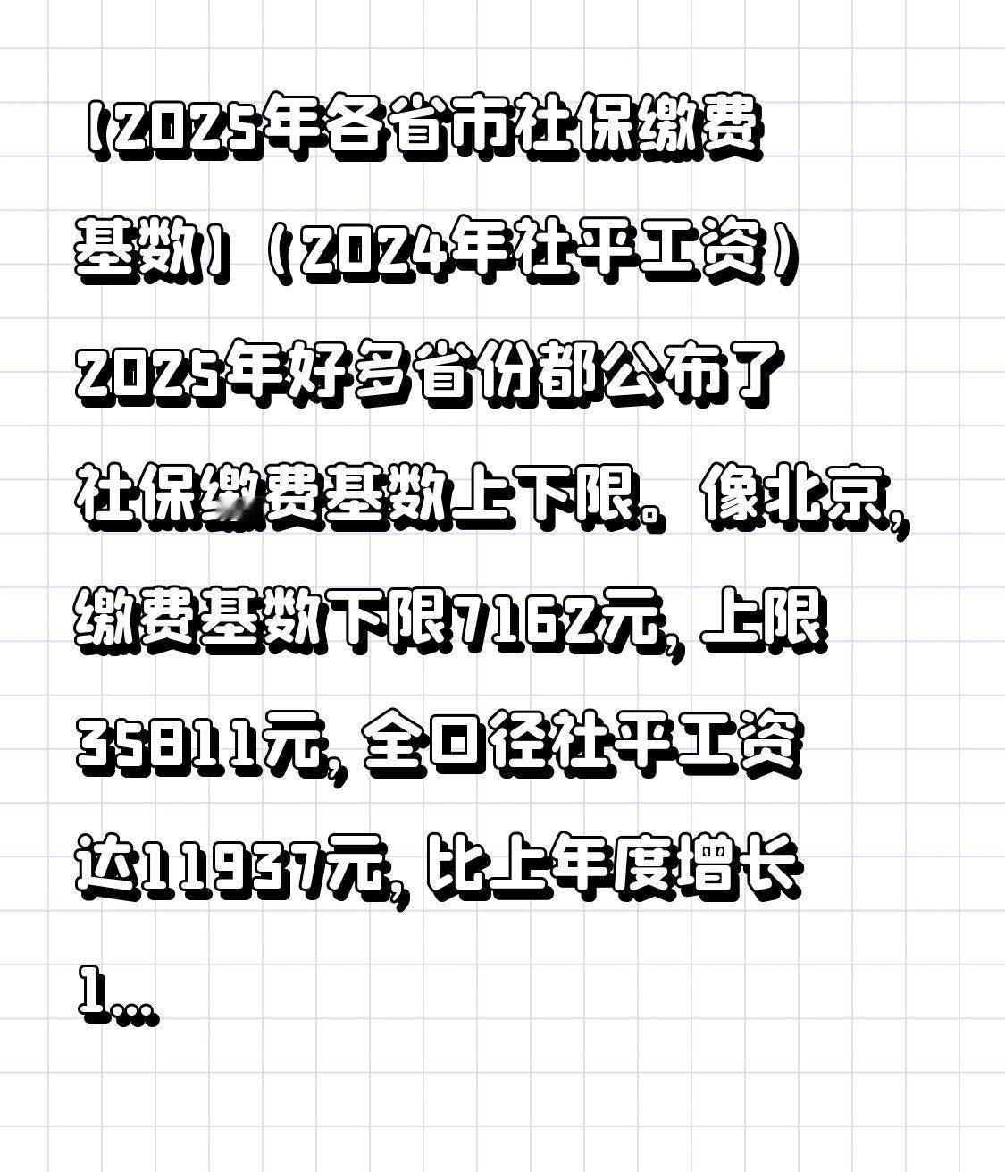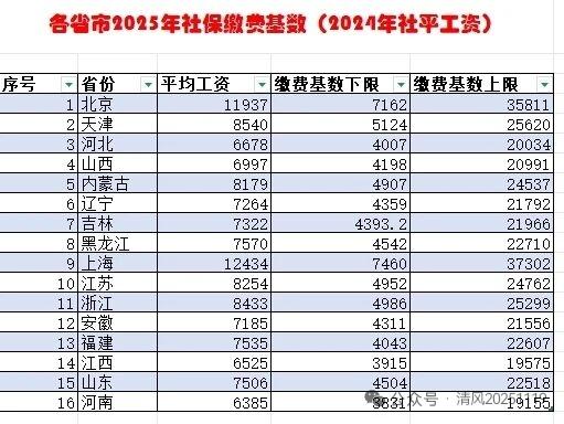 【2025年各省市社保缴费基数】(2024年社平工资) 2025年好多省份都公布