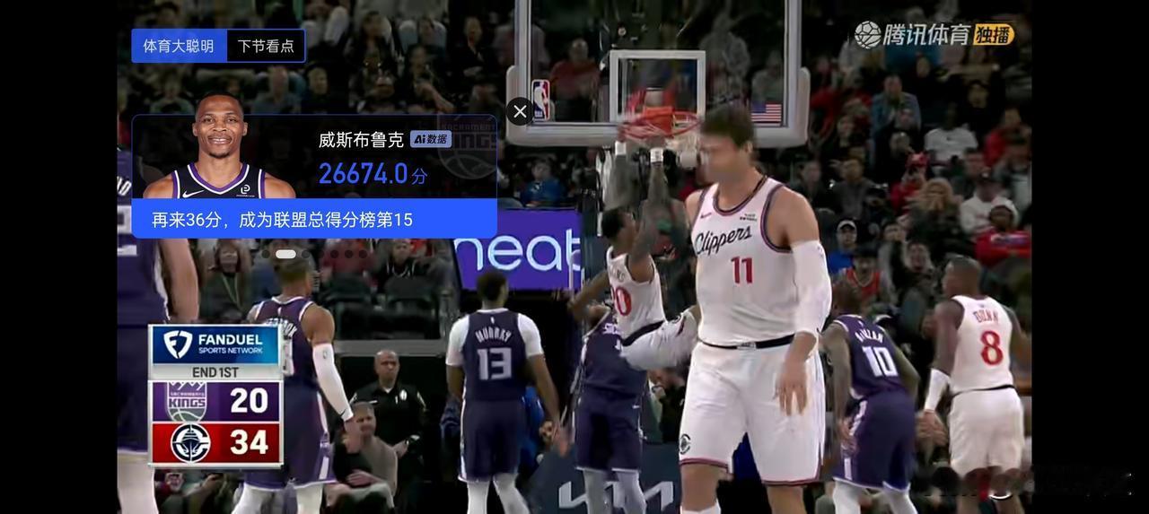 卡乔丹伦纳德半场就砍下26分!哈登都有时间场上找女裁判聊天了?快船突然就变成了能攻善投了? 国王半场40比73快船!半场打花国王!防的国王仅得到40分! 谁还说威少是快船的克星?双核炸场!带动科林斯,虽然大洛得到0分,但空间扯开了,登卡效率急剧上升! 替补年轻球员、角色球员分工明确,尽管在有效的上场时间内拼命防就可以,进攻交给双核! 哈登半场也有16分入账!科林斯12分! 对面国王队半场被防的没有一人得分上双!威斯布鲁克得到7分!