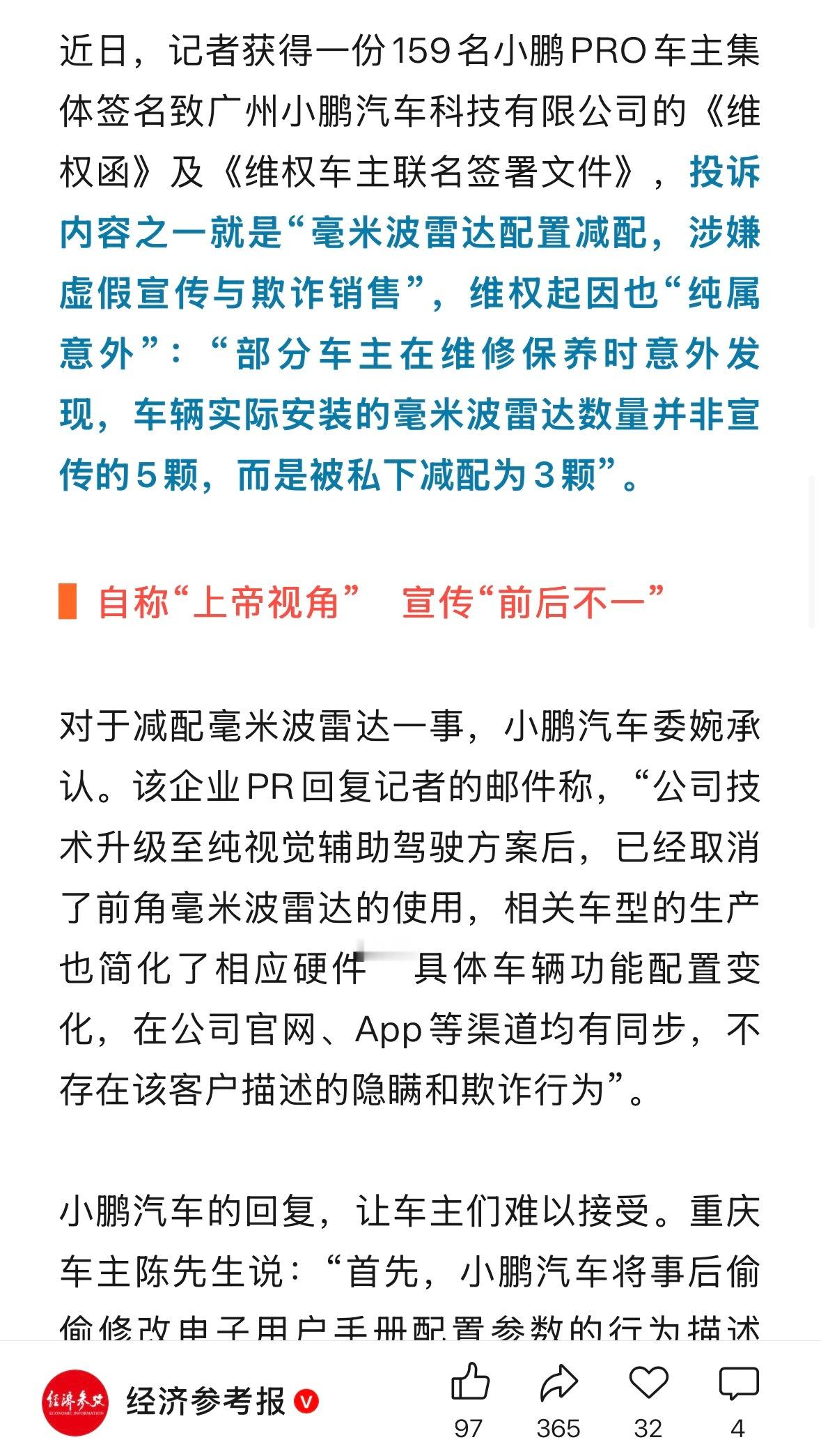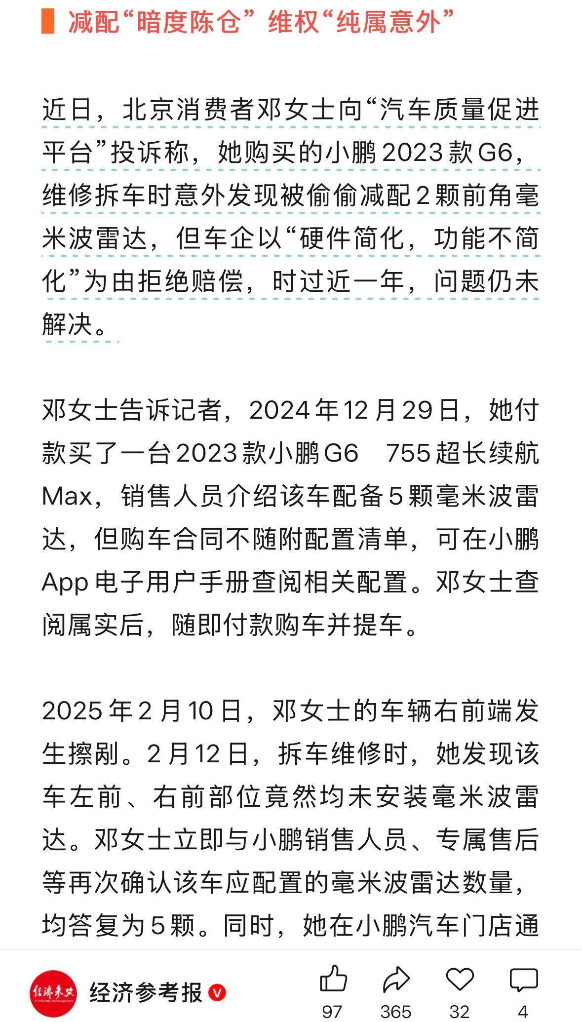 小鹏汽车被指涉嫌销售欺诈 央媒下场,小鹏被指“销售欺诈”,5颗毫米波雷达变三颗,这个咋回事,小鹏居然也干这样的事?