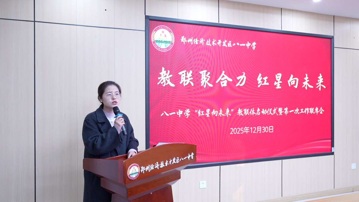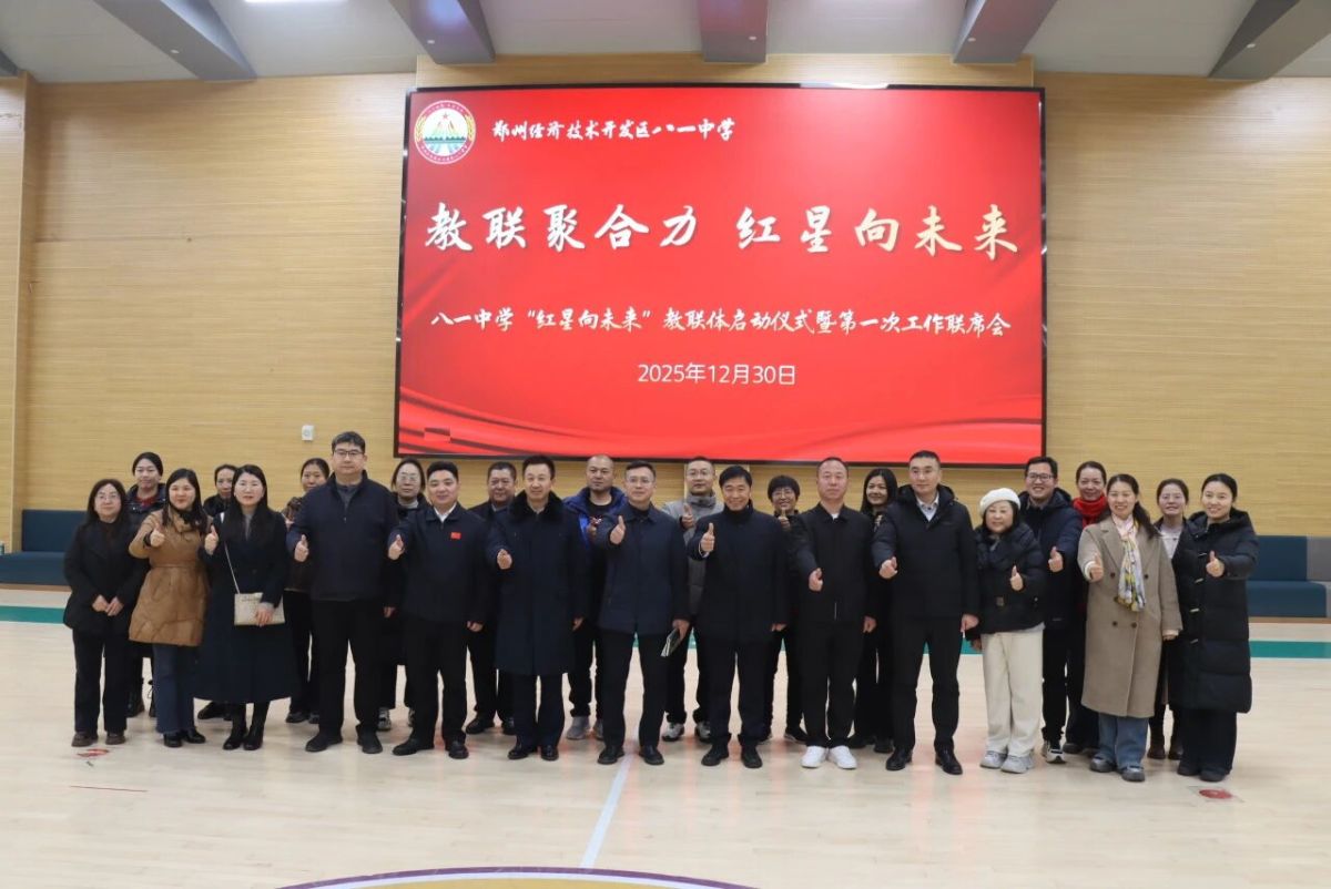 为深化家校社协同育人机制,汇聚优质教育资源,12月30日上午,郑州经开区八一中学组织召开“红星向未来”教联体第一次工作联席会。来自政府部门、共建单位、高校专家及家长代表共聚一堂,围绕教联体章程建设、资源共享、课程共建及运行机制展开深入研讨,共同谋划区域教育协同发展新路径。联席会由八一中学副校长王冰琼主持。