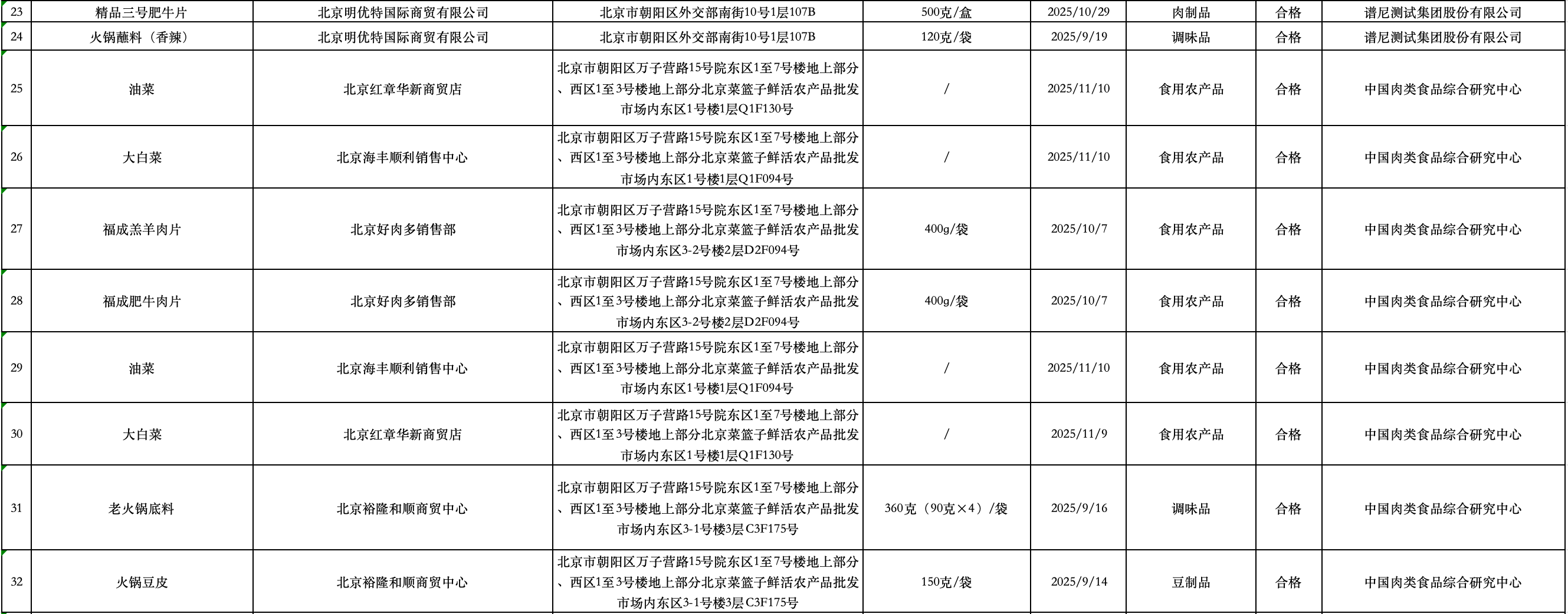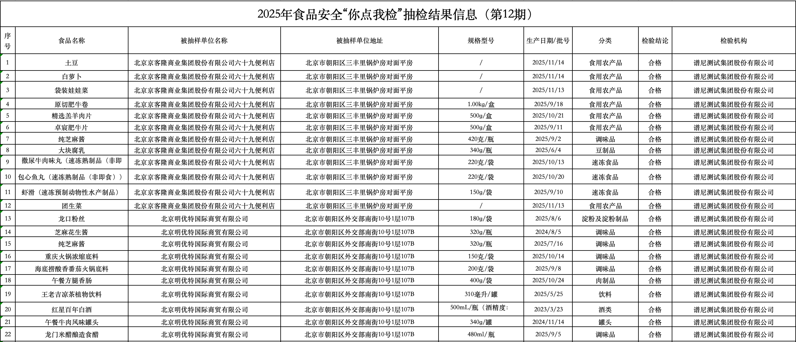 朝阳区市场监督管理局公示“你点我检”活动(2025年第12期)抽检结果