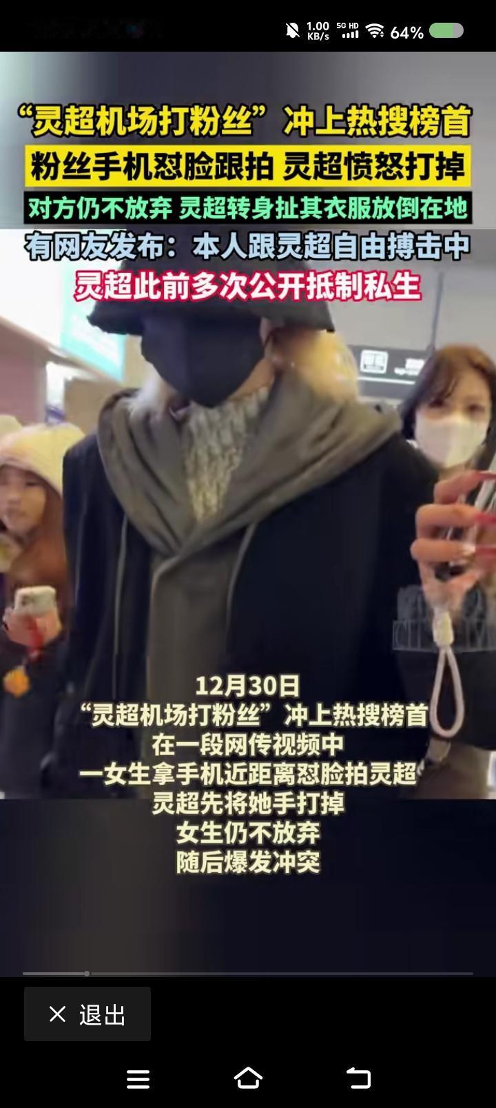 有人机场打粉丝?—— 据报道,某艺人机场打粉丝。起因是粉丝怼脸跟拍,艺人与她发生