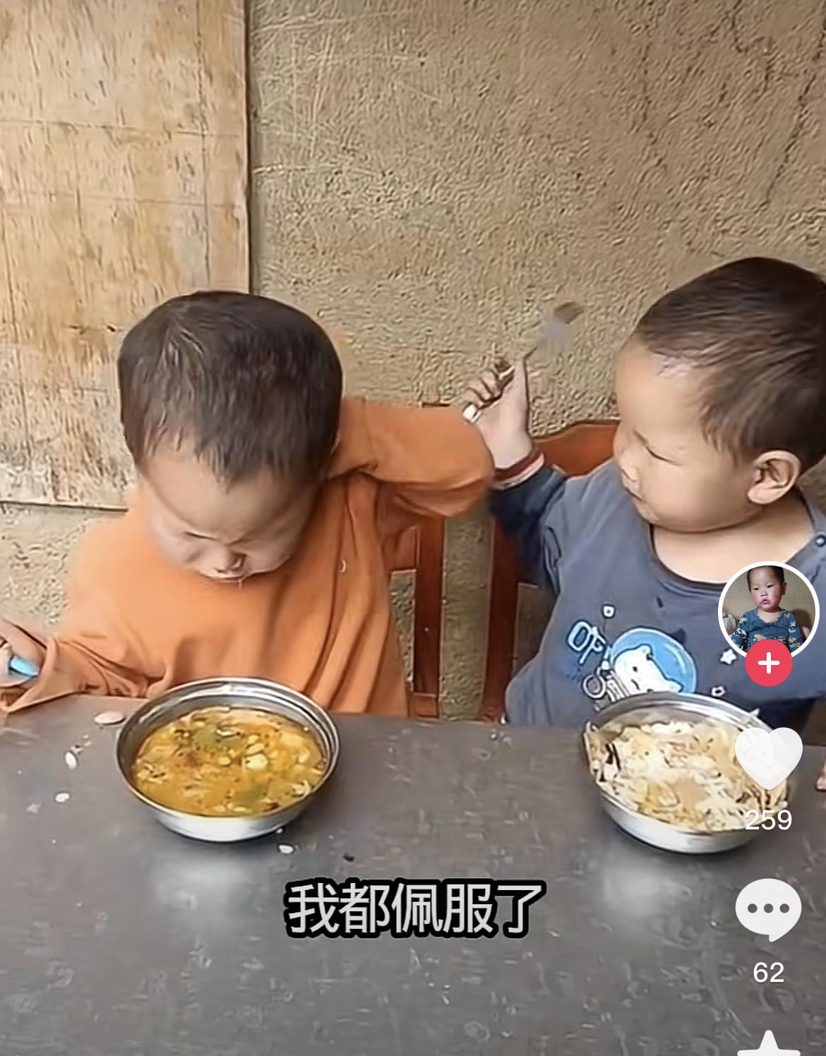 果然,童话都是骗人的! 大双小双在童话里,圆圆的红扑扑笑脸,大大的笑眯眯的眼睛,兄弟两人多么温馨! 然而,事实是大双小双吃饭,大双碰了小双下,把饭洒了,小双大哭,拿勺子打大双,大双被打痛了,也开始哭,妈妈说大双好哄,哄哄就不哭了。然后继续吃饭。 大双小双家有四个孩子:大儿子、二女儿,大小双(三儿子、四儿子)。大儿子和二女儿已经上学,双双还没有上学。 大儿子大概7.8岁,面对镜头怯怯的,二女儿和大小双经常争抢东西,抢面吃,抢肉吃。特别是大小双经常打来打去。 大概因为粉丝们老吐槽,孩子争食打架,现在丑妈基本都发双双比较乖的视频。帮妈妈干活,自己吃泡面。 大小双也应该慢慢地开始上学了!