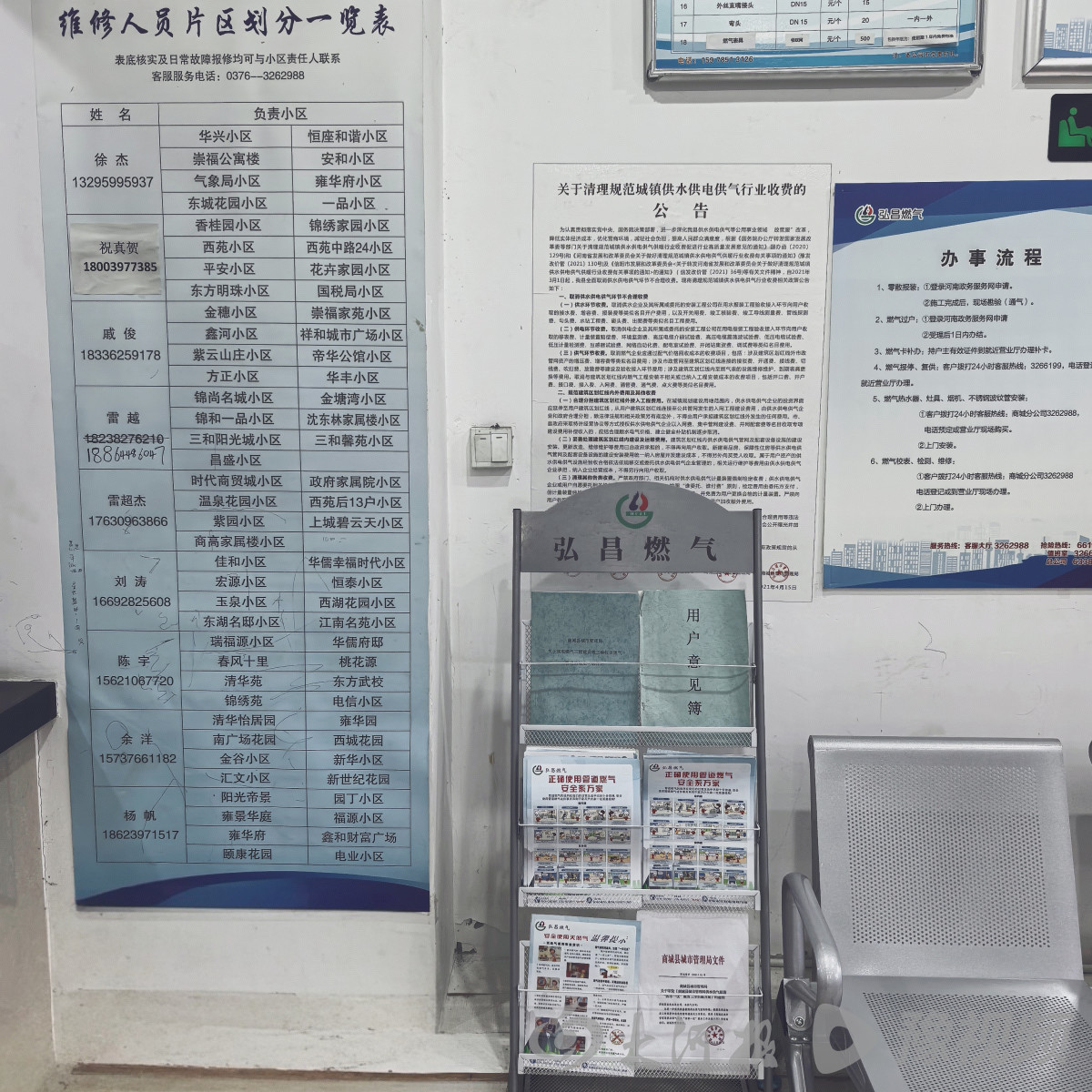 燃气营业厅是服务用户的一线窗口。本次升级以“便民、利民、惠民”为宗旨,着力优化服务环境:设立便民服务角,配备饮水机、老花镜、急救箱等便利设施;合理规划功能区域,设置清晰标识,划分等候区、办理区与咨询区,提升办事指引性;在等候区摆放燃气安全手册与业务指南,方便用户随时查阅。