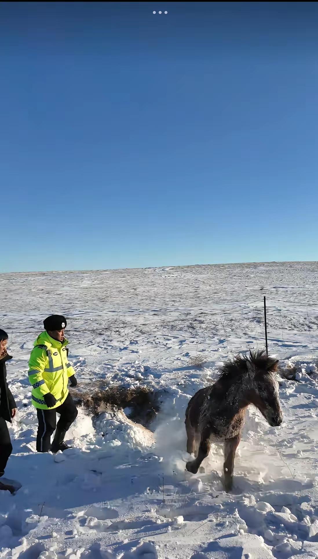 呼伦贝尔,一男子和朋友自驾游,忽然发现一匹马卧在路边雪堆里一动不动,本以为马是冻僵了,结果凑近了才发现,马的后蹄竟然被铁丝围栏紧紧缠住,根本无法挣脱,男子见状当即拿出工具,深一脚浅一脚的奔了过去。 ​当时白天的气温就已经达到了零下30度,谁也不知道这匹马在这里被冻了多久,可男子清楚,如果他们不救,很可能一天马就会被冻死。 寒风跟刀子似的往人骨头缝里钻,男子握着工具的手没一会儿就冻得通红发麻,连捏紧钳子都要费不少劲。朋友在一旁帮忙拽住马的缰绳,怕受惊的马儿挣扎伤了人,也怕乱动会让铁丝勒得更紧。那铁丝早就在风雪里锈得发脆,却像一道死结,死死咬着马的蹄子,周围的皮毛都被磨得渗出血丝,冻成了暗红色的冰碴。 男子哈着气搓搓手,又弯腰埋头忙活,冰碴子蹭在手上生疼,他却连眉头都没皱一下。草原上的马哪能离得开奔跑的蹄子,更别说在这零下三十度的雪地里,多耽搁一分钟,这畜生就多一分没命的可能。 来往的车辆不多,偶尔有几辆车驶过,也只是减速看了一眼就匆匆开走,没人愿意在这鬼天气里多停留一秒。可这两个自驾游的汉子不一样,他们揣着的是一份见不得生灵遭罪的热乎心肠。 钳子咔嚓作响,锈铁丝终于被一截截剪断,重获自由的马儿低低嘶鸣一声,挣扎着站起身,踉跄了几步才站稳,回头望了一眼两个救命恩人,慢吞吞地朝着草原深处走去。它或许不懂什么道谢的道理,但那一眼的回望,藏着最纯粹的感激。 都说草原儿女心肠热,其实这份热乎,从来不分是不是土生土长的草原人,只分是不是有颗愿意伸手的善心。 各位读者你们怎么看 欢迎在评论区讨论