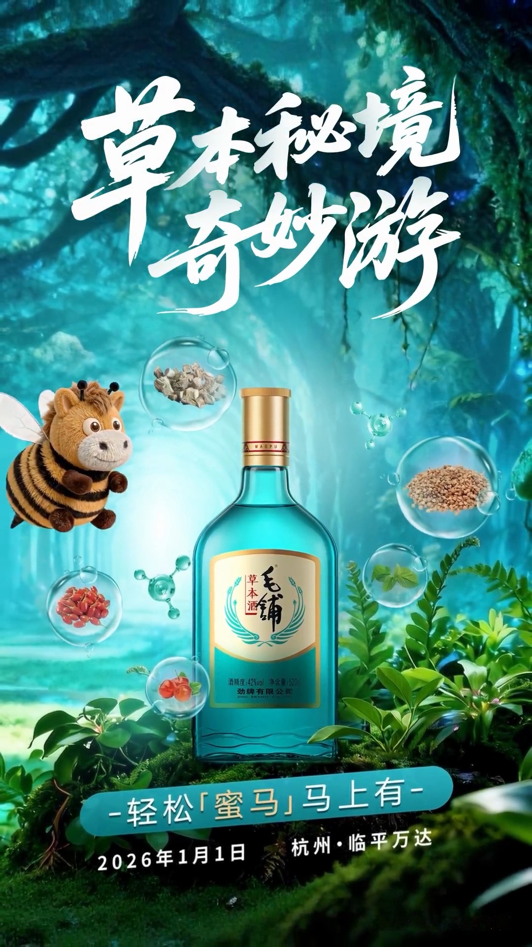 新鲜速报!收到可靠消息,老师1月1日元旦当天,空降杭州临平万达,不是影视拍摄也不是综艺录制,听说是带大家来一场特别的沉浸式探秘草本体验活动!据说,活动现场有个非蜜也非马的超萌ip“蜜马”,合影打卡必出片!还有机会和沙溢老师碰杯互动。一想到能跟明星当一回酒搭子,本追星女孩激动的心已经飞往杭州了!悄悄做了攻略,这次活动的主角——毛铺草本酒,它可不是普通白酒,而是添加了苦荞麦、葛根等五味草本精华的草本白酒,草本赋能轻负担,这搭配思路真的超级妙——既保有白酒的醇厚感,又多了份健康考量,平时喜欢小酌小聚白酒来放松的朋友真是有福啦。这里实名羡慕一下杭州的朋友们,近距离追星、品尝特调酒饮、玩转互动区领取毛铺草本酒,咱就说送到家门口的福利完全没有不Get的道理呀!都给我冲!冲!冲!马年开新局 新年第一杯敬老己 在浙喝酒最轻松